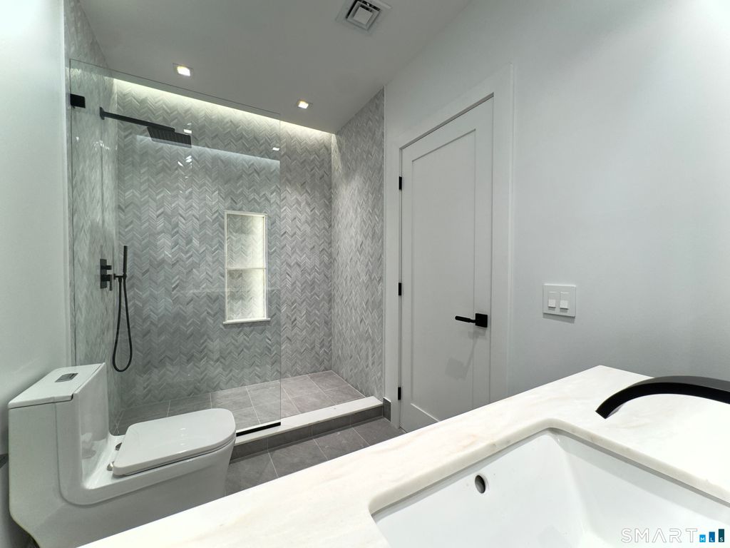Stunning NEW CONSTRUCTION in the centrally located Springdale neighborhood of Stamford, CT. Built by a two-year HOBI Awards winner, this modern Colonial blends exceptional craftsmanship with thoughtful design. Offering 6 bedrooms and 5 full bathrooms, this home features a bright, open layout perfect for both everyday living and entertaining. The gourmet kitchen is equipped with fully integrated appliances and custom cabinetry for a seamless, sophisticated look. Designed with high end finishes and smart home technology, featuring a centralized lighting system. Hardwood floors run throughout, adding warmth and elegance to every space. A beautiful spacious backyard offering exceptional privacy. The fully finished lower level provides additional living area ideal for a media room, gym, or guest suite. A rare opportunity to own new construction in one of Stamford's most convenient and desirable neighborhoods.