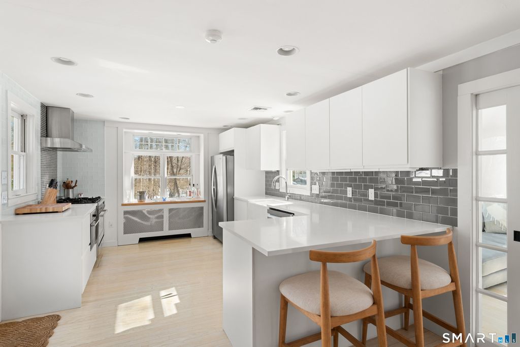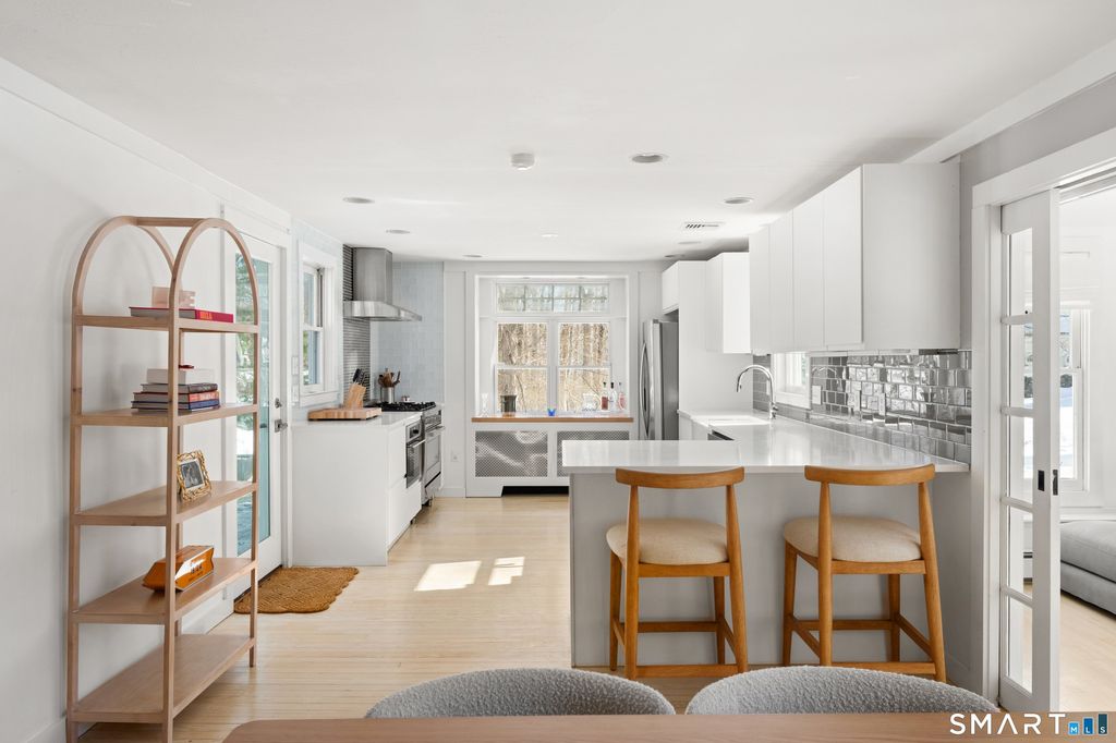 This enchanting, in-town haven is perfectly positioned in the heart of Westport. The sleek, newly renovated eat-in kitchen opens seamlessly to a vaulted-ceiling family room, highlighted by walls of windows, a fabulous pantry, and direct access to a spacious bluestone patio. Designed for easy one-level living, the home also features a charming living room with fireplace and oversized windows, a serene primary bedroom and second bedroom-both with beautifully renovated en-suite baths-and a versatile third bedroom or office with a Murphy bed that tucks away when not in use. The gorgeous backyard patio provides an ideal setting for entertaining and outdoor gatherings.