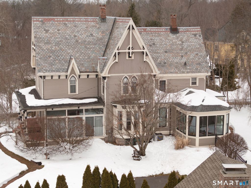 1542 Main Street: A Gothic Revival Masterpiece with a Modern Heart. If you've lived in Glastonbury, you know the Frank Potter House. Built in 1878, this isn't just an "antique" home; it's a local landmark that perfectly balances its historic Gothic soul with every modern luxury you actually want. From the moment you step onto the front porch (yes, the porch swing stays!), you can feel the history. Inside, the high ceilings and original character are everywhere-like the stunning stained-glass window in the dining room and a unique curved wall in the upstairs hallway that you just won't find in modern builds. The current owner has poured love into this house since 2009, so you don't have to.Like the Chef's Kitchen: Completely brand new with stainless steel appliances and a top-of-the-line 5-burner Thermador gas cooktop. The Primary Retreat: A total remodel featuring a classic claw-foot soaking tub for the ultimate escape. The "Harry Potter" Bath: A clever and stylish half-bath remodel tucked under the staircase. The Sunroom: This bright space now features hardwood flooring and 8 brand-new windows, perfect for morning coffee. This home lives larger than its 2,916 sq. ft. suggests. It features a back staircase for that classic New England feel, second-floor laundry for convenience, and a cozy small library for your collection. Outside, the yard is a private, fully fenced oasis with an underground sprinkler system to keep things lush.
