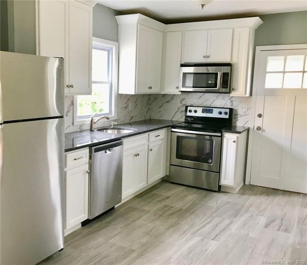 Stunning Modern Renovation in this 1 Bedroom, 1 bath 715 SF main floor apartment with spacious yard, full basement with laundry and ample parking in private driveway. New kitchen & baths feature new stainless steel appliances, contemporary tile and granite. Just minutes away from 84, you are moments away from the best Danbury has to offer. Parking for 2 cars, bright & updated living space, shared backyard with shed, and washer/dryer in unit. Walk-In closets, hardwood floors, freshly painted in light neutral grey. use of full basement for storage. Pet's considered. Available April 1. First month rent & 2 months security deposit at lease signing. Application, credit screening, proof of income and references required.