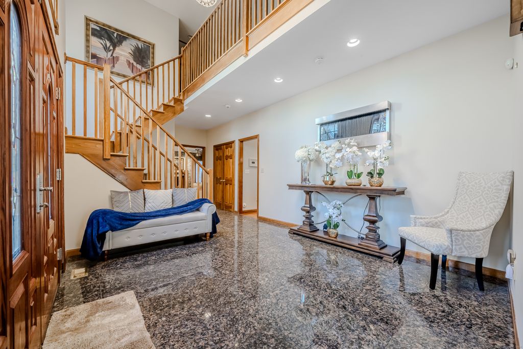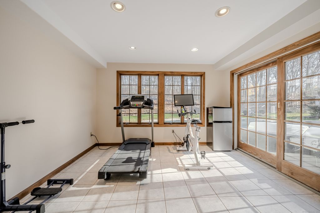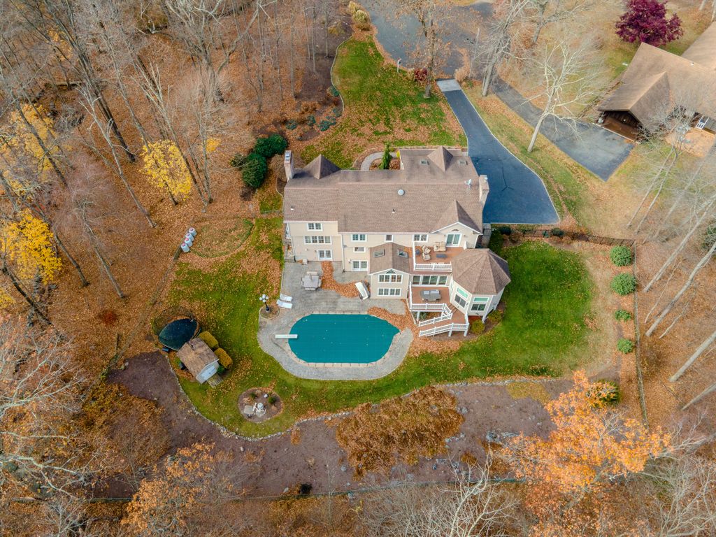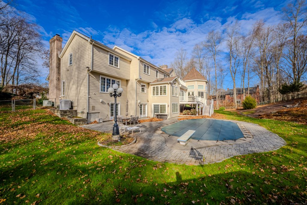 Located on a serene cul-de-sac in desirable Orange, this beautifully designed 4-bedroom, 3.5-bathroom contemporary home offers luxurious living and modern charm. The property features an inviting two-story foyer that opens to a bright, airy interior with hardwood floors throughout. The living room is a true showstopper, showcasing a vaulted ceiling, dramatic stone fireplace, and oversized windows that fill the space with natural light. The custom eat-in kitchen is a culinary haven, equipped with Wolf appliances, Sub-zero fridge, granite countertops, and two generously sized islands! Adjoining is the cozy breakfast nook, overlooking the private backyard and enhanced by a vaulted ceiling, skylights and window surrounds. Exquisite octagonal sunroom, complete with a soaring ceiling and a gas fireplace, provides year-round comfort and charm. The primary suite is a true retreat with a vaulted ceiling, double vanities, and a spa-like soaking tub and dual head steam shower for ultimate relaxation. Three additional large bedrooms offer plenty of room for family or guests. Recently updated walk-out basement adds versatile living space, ideal as a playroom, home gym, office, or even an in-law suite. Situated just a short stroll from the town center and quick drive to Routes 34 and 15, this home offers both convenience and accessibility for an easy commute to New Haven, Yale or commute to NYC. For those who appreciate quality and elegance along with functionality, take a tour today!