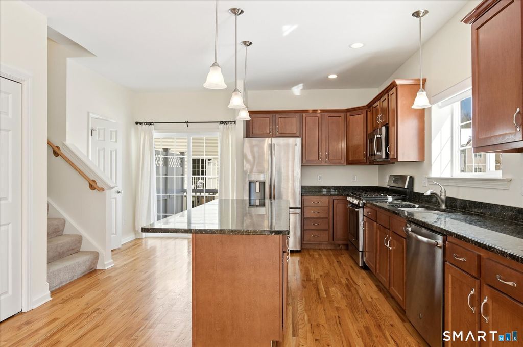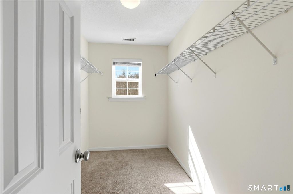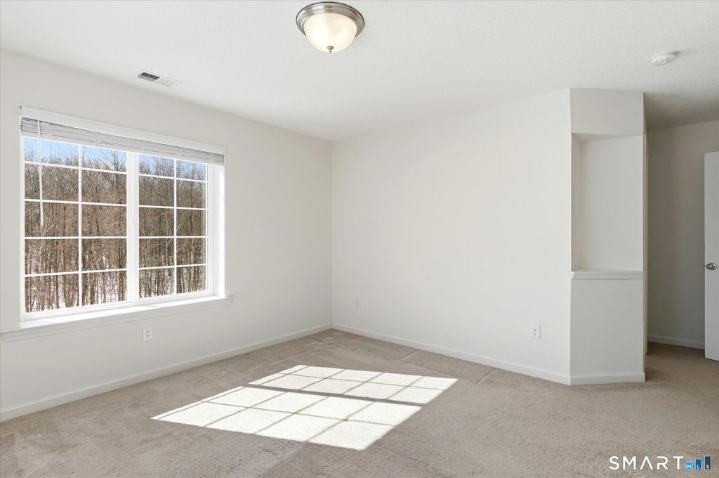Don't miss this stunning, like new home in the popular South Windsor Woods community! This spacious end unit was built in 2018 and is in a prime location with pretty views of the woods and a large yard area for outdoor activities. Step inside and fall in love. The main level offers an open floor plan, lots of natural light and gleaming hardwood flooring. The beautiful kitchen provides plenty of cabinet space, granite counters, a large pantry and deck to enjoy the outdoors. On the upper level you will find two generous bedrooms including the primary with a large walk-in closet and full bath. The convenient laundry room is also located on the bedroom level. The top level boasts a spacious loft that can be used as an office, recreation room or additional BEDROOM space. The loft has a huge closet and gets great natural light. The ground level offers a 2-car attached garage, mud room with tile floor and plenty of storage space. Special smart home features include three zone heating, energy efficient eco-bee thermostats, Lutron smart lighting, My Q wifi garage door opener and pre wiring for a television projector. This summer you will enjoy the private and sunny garden area right outside your door. This wonderful community in the Pleasant Valley School District offers walking trails, a clubhouse, gym, two ponds and open fields and is super convenient to shopping, dining, highways and all that South Windsor has to offer. Come fall in love with the beautiful home and location
