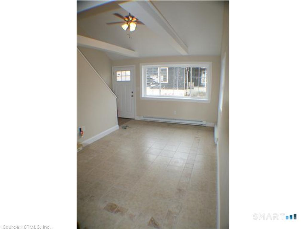 Townhouse-style one-bedroom apartment with an open layout and updated kitchen and bathroom featuring granite countertops. Dining area or office space leads to a private back patio. End-unit location offers additional yard space and extra natural light. Laundry on site and off-street parking available. Conveniently located near the Quinnipiac River district with easy access to hospitals, highways, and shopping.