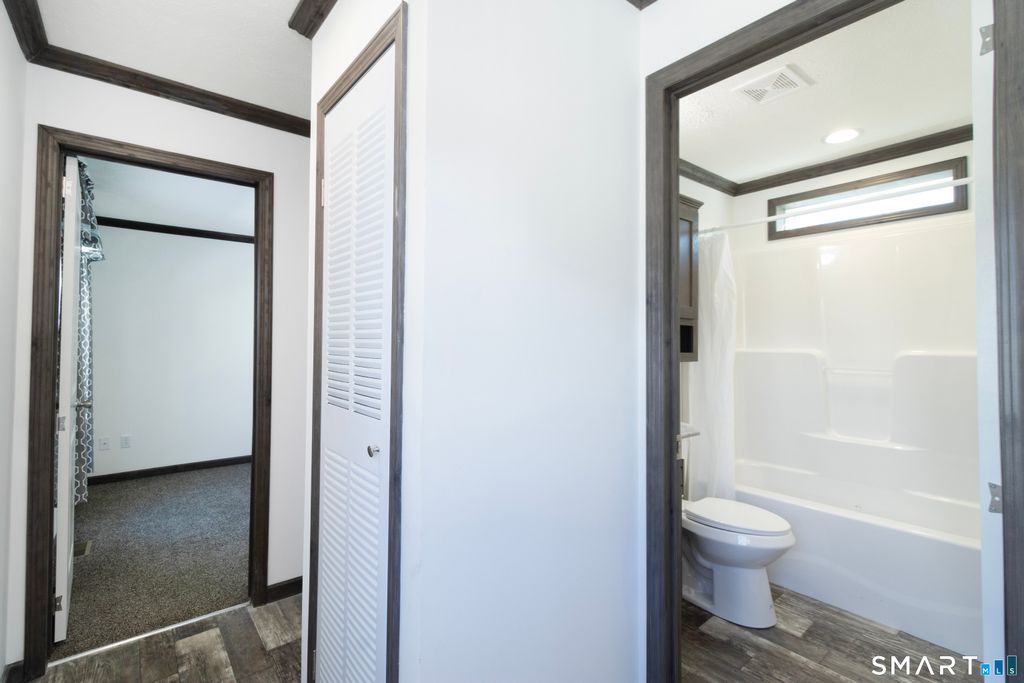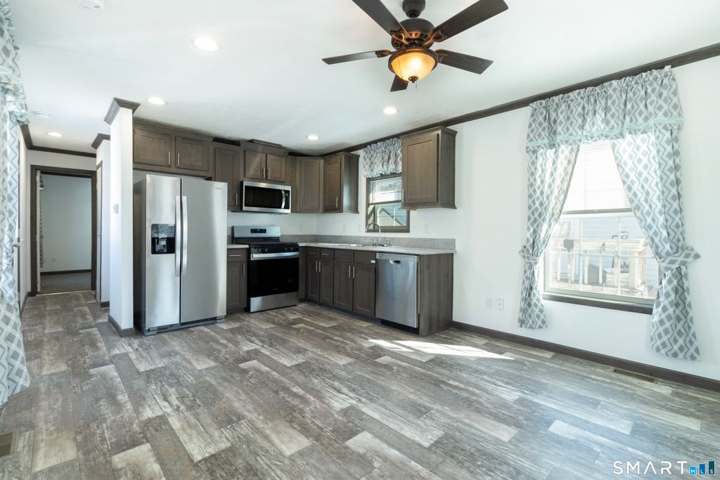 Brand new and never occupied, this 2024-built 1 bedroom, 1 bath manufactured home offers modern comfort in a well-established Branford shoreline community. Featuring 580 sq ft of thoughtfully designed living space, the open floor plan creates a bright and inviting atmosphere perfect for everyday living or a simplified downsized lifestyle. The kitchen is equipped with stainless steel appliances including gas range, microwave, refrigerator, and dishwasher. Central air and propane heat provide year-round comfort, and washer/dryer hookups add convenience. The spacious bedroom offers generous closet space, and the full bath is clean, modern, and functional. Step outside to enjoy your private deck, ideal for morning coffee or relaxing evenings. Exterior features include vinyl siding, asphalt shingle roof, and low-maintenance construction. Public water and sewer are connected. Located close to Branford's beaches, shopping, restaurants, and major commuting routes, this home offers an affordable opportunity to enjoy shoreline living in a professionally managed community. Prospective buyers must obtain park approval (credit and background check required).
