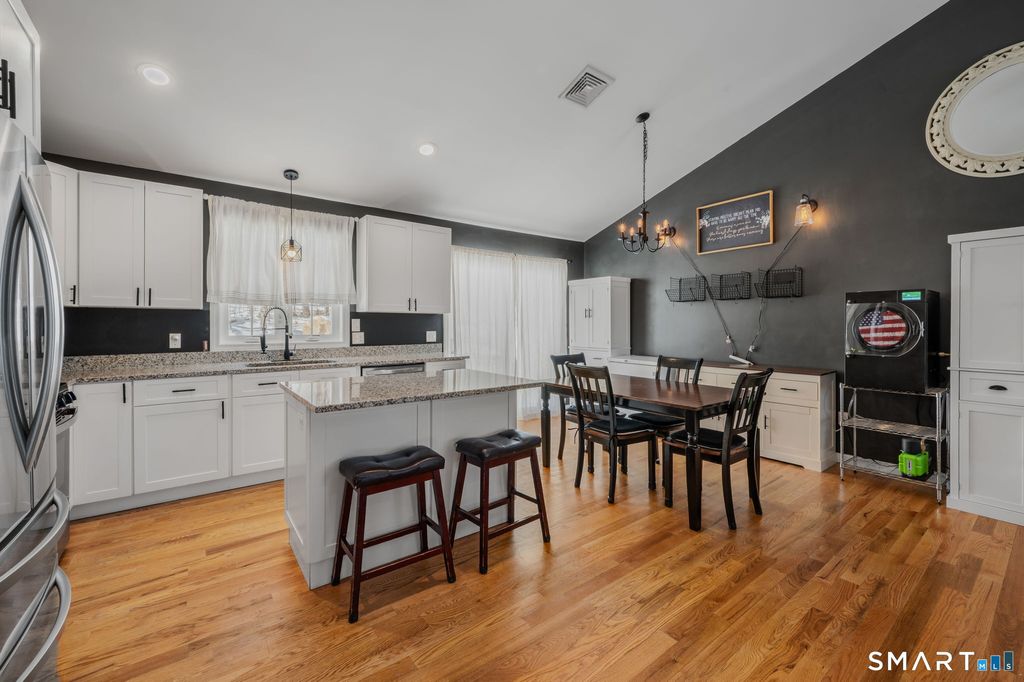 Welcome to this beautifully maintained 4-bedroom, 3 full bath raised ranch, perfectly situated on 1.3 private acres and just minutes from I-395 and Mohegan Sun. Built only 4 years ago, this home offers modern style, energy efficiency, and a spacious layout designed for today's lifestyle. The main level features an open floor plan with vaulted ceilings and gleaming hardwood floors, creating a bright and inviting atmosphere. The kitchen is the heart of the home, complete with a center island, stainless steel appliances, granite countertops, and ample cabinet space-perfect for entertaining or everyday living. You'll find three bedrooms on the main level, including a primary suite with its own private full bath. The finished lower level offers incredible flexibility, featuring a fourth bedroom with a private full bath-currently being used as a playroom-making it ideal for guests, a home office, or in-law potential. Additional highlights include a two-car garage, energy-saving solar panels to help keep monthly electric costs down, and a spacious 1.09 acre lot offering both privacy and room to enjoy the outdoors. Move-in ready and conveniently located near major highways, shopping, dining, and entertainment-this home truly has it all!