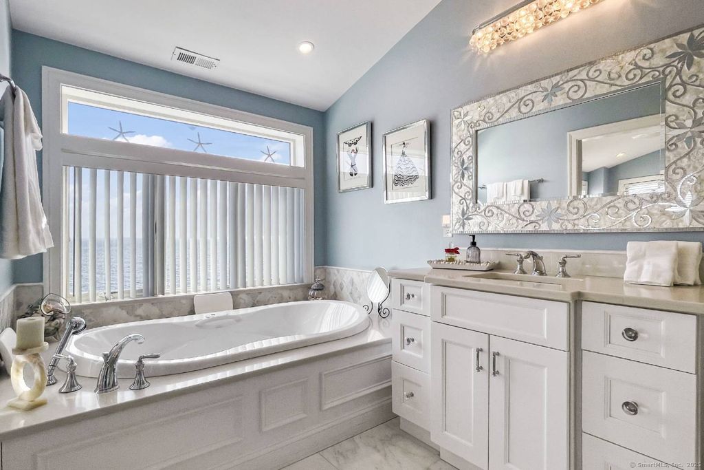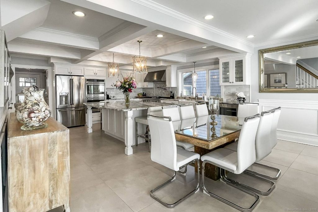 Direct Waterfront - Long Island Sound | Available June 1st Enjoy breathtaking sunrises and sunsets from this custom direct waterfront home overlooking Long Island Sound. From the moment you open the front door, you are greeted with stunning water views and a bright, open floor plan. The chef's kitchen features top-of-the-line GE Monogram stainless steel appliances, granite countertops, and an expansive center island with seating for six. Flow seamlessly into the dining area and spacious living room, highlighted by a HeatGlo gas fireplace and double sliders that open to a Trex deck-perfect for entertaining or simply relaxing while taking in the panoramic views. Upstairs, the waterfront views continue, providing a serene retreat. This home combines luxury and comfort, offering the ultimate coastal lifestyle. Has to be rented furnished