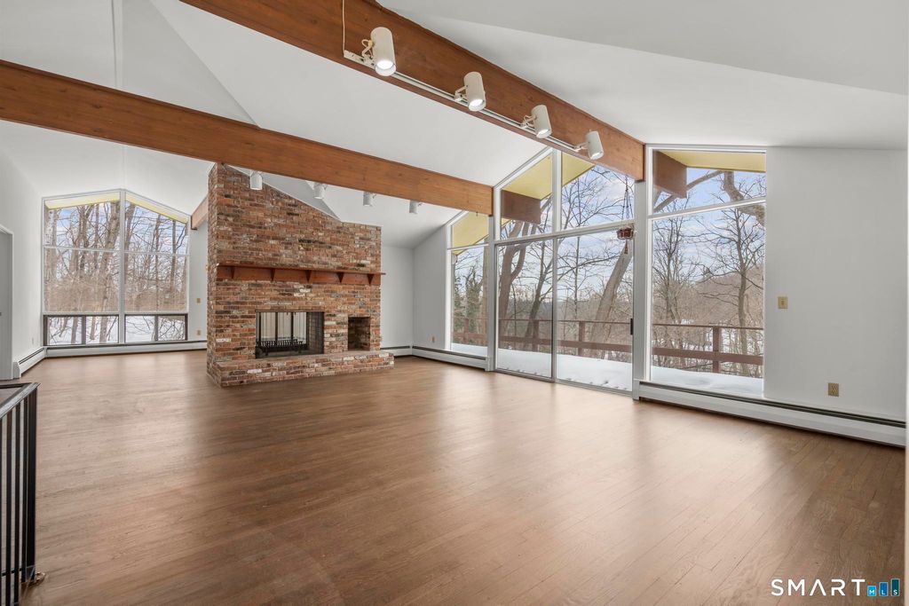 Beautifully updated contemporary-style Raised Ranch offering 2,650 sq ft with 4 bedrooms and 3 full baths in a prime Wilton location. Features a newly renovated kitchen, refinished floors, and fresh interior paint throughout. The main level showcases soaring ceilings in the living and dining areas, creating an open, airy feel with great natural light. Flexible layout includes multiple living areas and generous room sizes-ideal for everyday living, work-from-home, and hosting. Enjoy two fireplaces, a deck, and a peaceful 2.13-acre setting. Detached one-car garage included, plus ample additional parking. Convenient to Wilton Center, shopping, dining, parks, and commuter routes/train access.