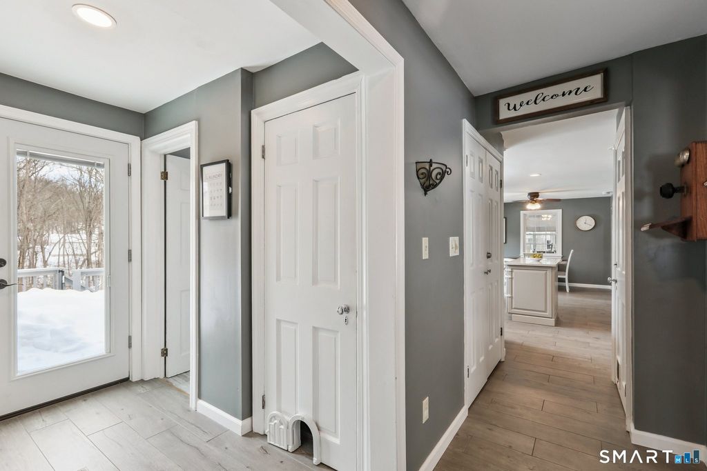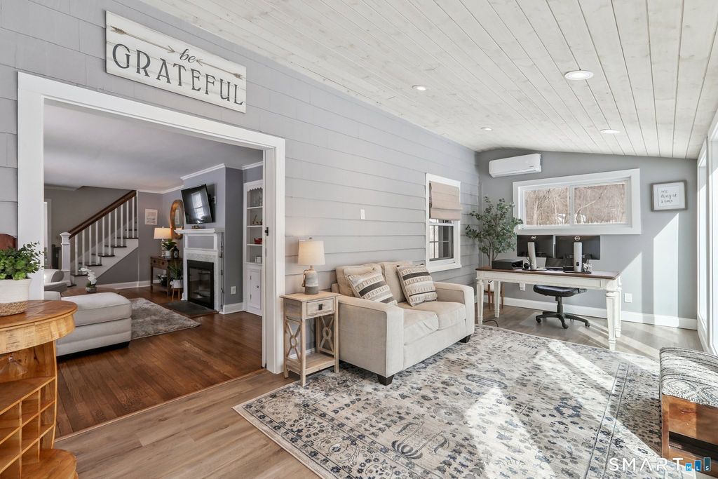 Welcome to this absolutely charming Cape Cod-style home, perfectly sited on a picturesque lot w/ over 2 acres in one of Danbury's most desirable locations. Offering timeless character & modern updates, this home is move-in ready. The main level offers a wonderful flow for everyday living and entertaining. A spacious, light-filled family room provides ample room to gather, while the inviting living room w/ a charming built in bookcase and cozy fireplace provides the perfect spot to unwind. A dedicated dining room just off the kitchen makes hosting effortless. The kitchen is beautifully appointed w/ quartz countertops, a center island, and abundant cabinetry for storage and functionality. A large garden window above the sink offers the perfect view of the gorgeous backyard and a very handy spot to grow herbs! A mudroom off the 2 car attached garage provides easy access directly into the home, along with convenient laundry, storage, and half bath. The upper level provides a lovely primary bedroom, with it's own private en suite with tub/shower combo, double closets, and mini split system for added comfort. A fully remodeled hall full bathroom offers a deep tub, all new fixtures, composite subway tile shower surround for easy maintenance, shiplap walls - designed w/ today's style in mind. 2 additional bedrooms offer comfortable & inviting spaces, each featuring beautiful hardwood floors and soft, neutral paint tones to create a calm and versatile backdrop for any decor style.