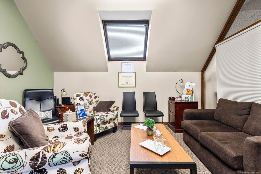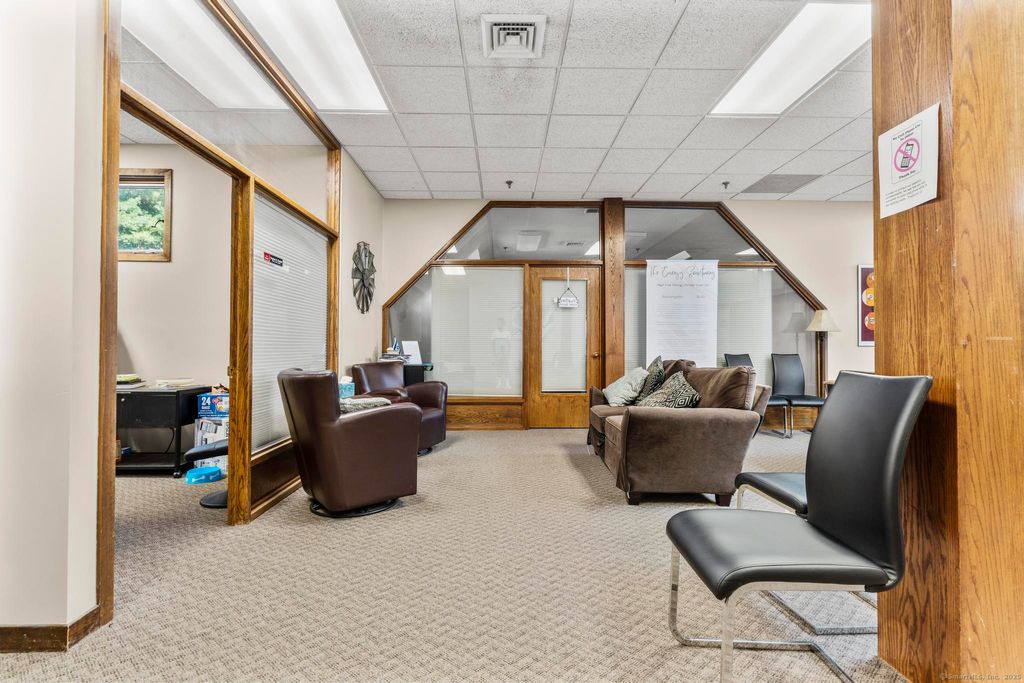 Prime office space for sale in Woodbury. Situated at the high-traffic intersection of Route 64 and Route 6, this contemporary office park offers exceptional exposure and convenience. The property features four separate buildings with modern architecture, abundant windows that flood the offices with natural light, inviting courtyards, and beautifully maintained mature landscaping. Located in building A, this unit is on the second floor with an elevator for ease of access. The space is perfect for a therapist, accountant, lawyer, etc. Ample open parking ensures convenience for staff and clients alike. With its attractive design, professional setting, and unmatched accessibility, Cornerstone Professional Office Park provides an ideal space for your business to thrive.
