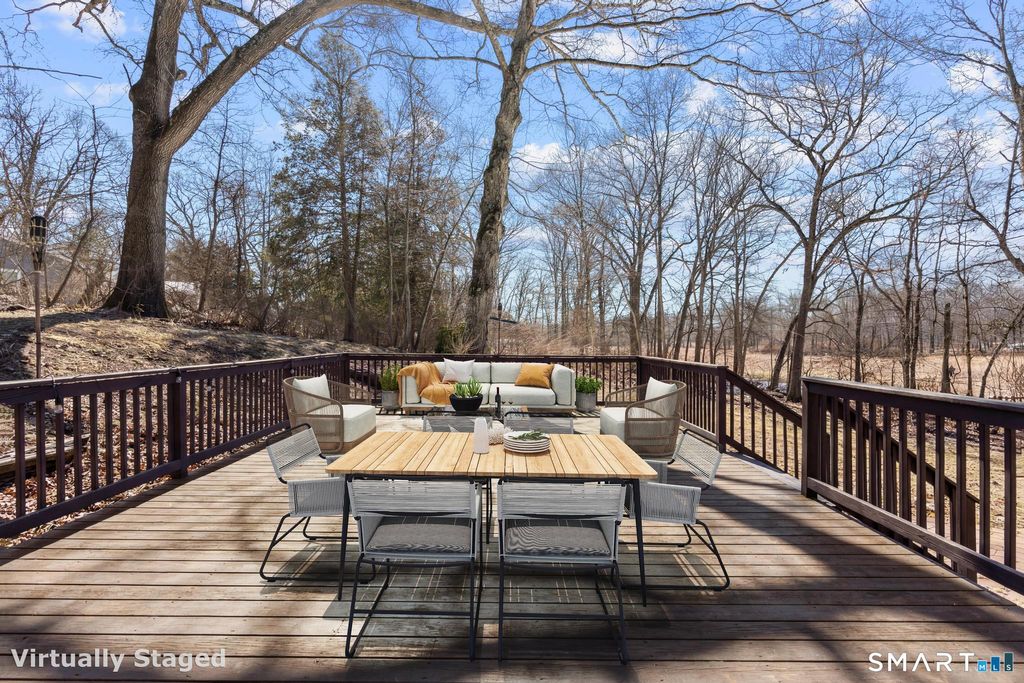 Recently renovated and ideally set on a full acre in sought after West Norwalk, this exceptional home borders Oak Hills Golf Course and offers a rare blend of privacy, open space, and sweeping views. A gracious foyer leads to sun-filled living and dining rooms with oversized bay windows overlooking the expansive backyard. The sparkling eat-in kitchen w/new countertops and st/st appliances flows into a gleaming sunroom w/ sliders that lead to a wraparound deck, creating seamless indoor-outdoor living perfect for entertaining, relaxing, or working from home. Upstairs features 4 generously sized bedrooms and 2 full baths. The jaw-dropping primary suite offers a spa-inspired bath with a walk-in shower, soaking tub, and dual-sink marble vanity. The lower level boasts an impressive family room w/exposed wood beams, a wood-burning fireplace, and sliders to the yard. An attached two-car garage provides convenient access through the laundry room and updated powder room. Since 2018, updates include a newer roof and hardie board siding, well pump, water filtration system, septic tank, oil tank, newer heating system, and smart irrigation. Enjoy stunning sunsets over the golf course while remaining minutes to Norwalk's shopping, dining, parks, beaches, highways, and Metro-North. Come and make this your ultimate dream home! Also available to purchase!