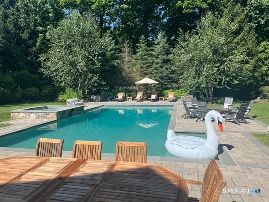 Set in one of Westport's most sought-after central neighborhoods, this gracious 5+ bedroom custom Colonial with a stunning gunite pool and spa offers the perfect balance of timeless elegance and modern comfort. Sun-filled interiors and thoughtful design create seamless flow for both entertaining and everyday living. The main level features a private office, elegant dining room with butler's pantry, and a living room with fireplace and French doors opening to the patios and park-like yard. The expansive white gourmet kitchen with quartzite counters, brand new Wolf double oven and gas cooktop, warming drawer, and SubZero refrigerator flows into a welcoming family room with floor-to-ceiling stone fireplace. A mudroom, three-car garage, and two powder rooms complete the level. Upstairs, the luxurious primary suite spans front-to-back with high ceilings, dressing area, generous closet, fireplace and spa bath. Four additional en-suite bedrooms, an upstairs family room, and dual staircases offer comfort and flexibility. The finished 3rd floor has 2 BR & bathroom and lower level provide exceptional additional space including a home theater, wine cellar, gym, and game room. Enjoy summer afternoons by the pool, evenings by the outdoor fireplace, and effortless al fresco dining under the stars and enjoy the new retractable awning. Designed for gathering, relaxing, and celebrating, this home offers year-round resort-style living.