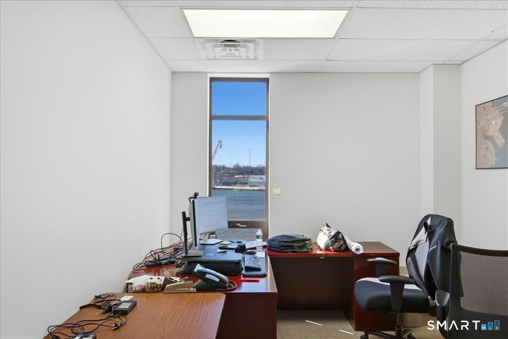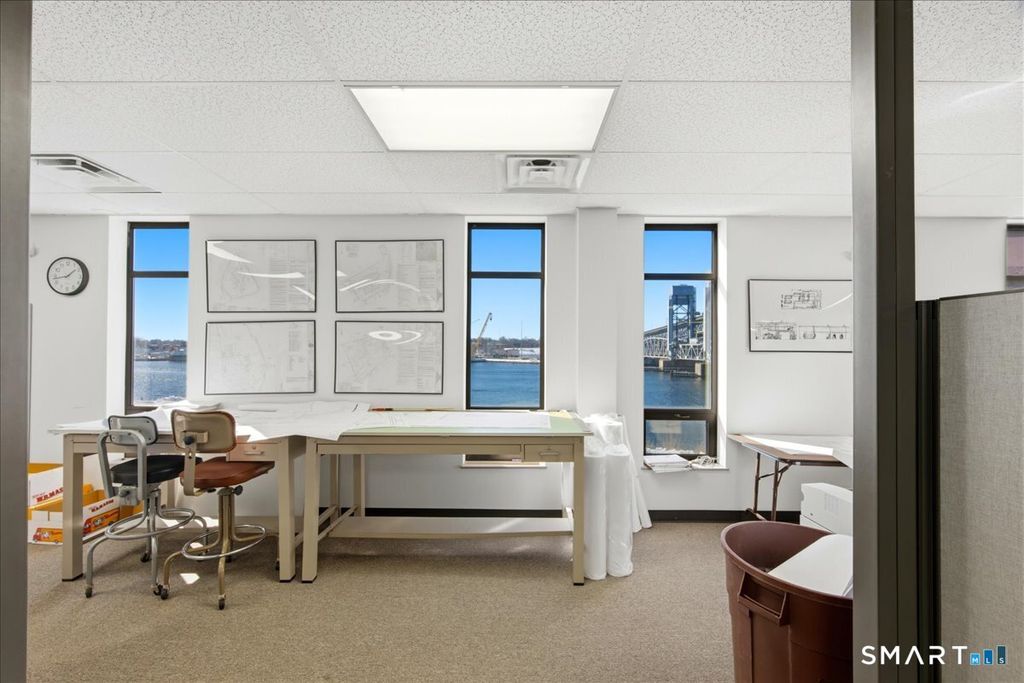 An exceptional waterfront office opportunity! This 4,138 SF single-floor suite offers a flexible, move-in ready layout ideal for a variety of professional users. The space features a large open-plan work area designed for collaborative workstations, along with six private offices - several offering direct views of the Thames River. Two conference rooms accommodate meetings of all sizes: a 22' x 24' boardroom with presentation display and a 17' x 13' secondary conference room. A dedicated IT/server room and additional storage provide essential infrastructure. Expansive windows fill the suite with natural light and showcase unobstructed views of the Thames River, the Gold Star Memorial Bridge, and the active waterfront - creating a memorable setting for clients and staff alike. The building offers a professional lobby, elevator access, and a well-maintained common area environment. Located in a multi-tenant professional building, the property includes ample on-site parking and convenient access to Route 1 and I-95. Positioned within southeastern Connecticut's business corridor, the location provides easy connectivity to Groton, New London, and Mystic. Highlights: * 4,138 SF single-floor suite * 6 private offices (several with river views) * Large open collaborative workspace * Two conference rooms (22' x 24' & 17' x 13') * IT/server room and storage * River and bridge views * Professional lobby with elevator access * Ample on-site parking