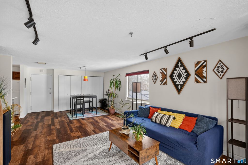 Welcome to easy one-level living in the heart of Wallingford! This beautifully updated ranch-style condo is located in a desirable mid-rise building just steps from downtown shops, restaurants, coffee spots, and the train station, offering both convenience and lifestyle. What truly sets this unit apart? Privacy. Unlike typical end units that still share a wall with a neighboring residence, this rare end unit sits beside the stairwell, creating a double-end feel. With only one direct adjoining wall, you'll enjoy exceptional quiet and separation rarely found in condo living. In fact, the current owner has even hosted weekly band rehearsals without a single noise complaint, a testament to the solid construction and privacy this unit offers. Inside, the home has been thoughtfully refreshed. The kitchen features timeless Quartz countertops, recently painted cabinetry, and newer vinyl plank flooring that continues the modern feel throughout. The open living and dining area flows effortlessly into a serene sunroom overlooking Wallingford Country Club & Golf Course, a peaceful backdrop and the perfect space to entertain friends or relax with your morning coffee. Even better, the average monthly "fair share" utility bill for heat, air conditioning, and hot water is approximately $110 per month, offering outstanding efficiency and predictability. With its rare positioning, tasteful updates, and unbeatable proximity to downtown, this home delivers privacy, practicality, and lifestyle!