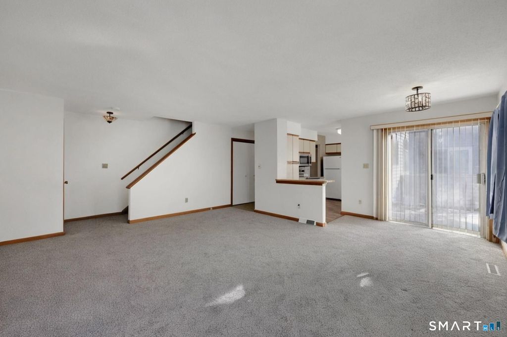 Welcome home to 23 Staffordshire Commons. This freshly painted 2 bedroom, 1.5 bath townhouse offers 1,170 square feet of warm, inviting living space designed for everyday living featuring new carpeting in Livingroom, stairs, upstairs hallway and primary BR which adds a clean, modern touch. Additional upgrades include a newer furnace 5-6 Yrs and central air unit 5-6 Yrs, which provide peace of mind for years to come. The spacious Livingroom, anchored by a cozy corner gas ventless fireplace, and dining area with sliders to a low maintenance trex deck, a fully applianced kitchen - including washer and dryer in a hallway laundry closet- makes daily life effortless. Generous closet space in this unit ensures you'll never run short on storage. This unit includes a two-car garage and an additional exterior storage room. So much potential to make it your own, this is a unit you can truly settle into and grow with.