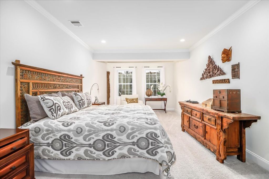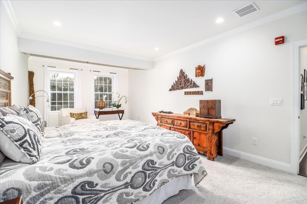 Luxurious one-level living awaits in this beautifully appointed Toll Brothers residence at Newtown Woods, a sought-after 55+ community. This 2-bedroom, 2-bath, 1,500+ sq. ft. third-floor unit offers secure entry, elevator access, a private garage, and a covered balcony with serene views of woods and stream. The open floor plan features hardwood floors, 9' ceilings, and elegant finishes. The eat-in kitchen includes a breakfast bar, granite counters, stainless steel appliances, and modern 48" cabinetry, with space for casual dining. The ensuite primary bedroom offers a sunlit sitting area, walk-in closet, and retreat-like comfort. The second bedroom is versatile for guests, office, or TV space. Conveniently located near dining, shopping, cultural venues, and commuting routes, midway between NYC and Boston. Residents enjoy a 5,800 sq. ft. clubhouse with fitness center, yoga studio, sauna, gathering room, bar, classroom, art studio, billiards, and game room. A catering kitchen supports social events. Outdoor amenities include a heated pool, patio, bocce court, trails, and gazebo with grill. This picturesque community offers both relaxation and activity.