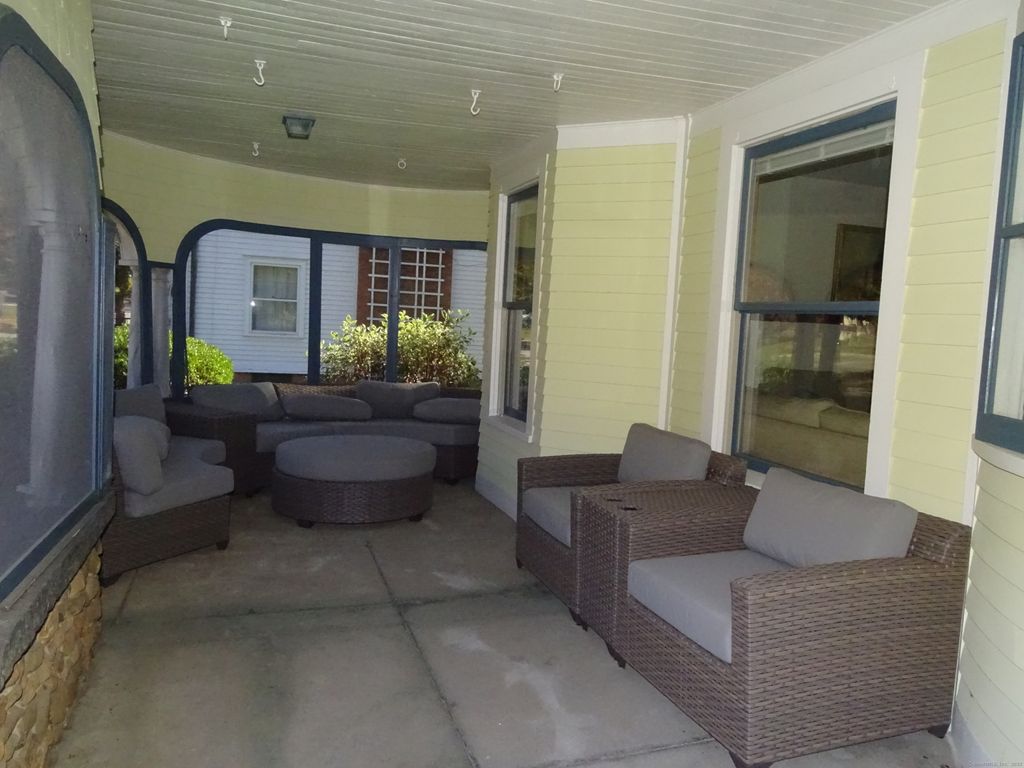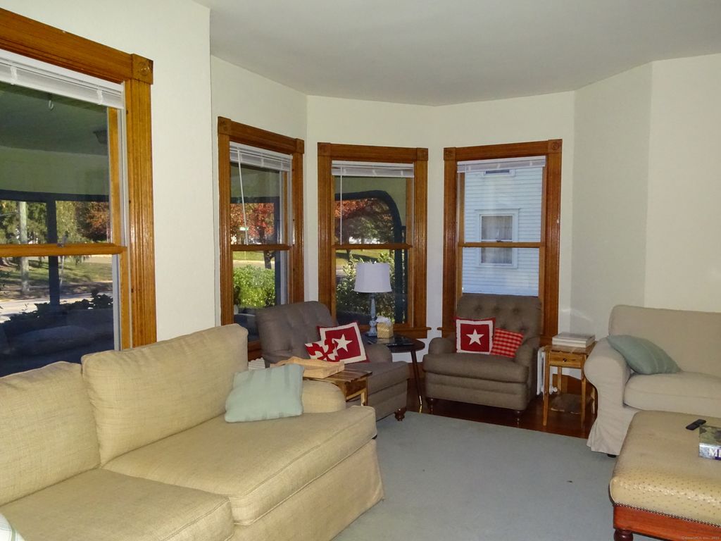 STATELY VICTORIAN ACROSS FROM THE TOWN GREEN! This special residence has been carefully maintained and features gleaming wood floors and natural woodwork. The main level offers a gracious foyer, which leads to the Parlor/Living Room. The Dining Room and Study/Family Room with fireplace are nearby. The eat-in Kitchen, with Butler's Pantry, is across the rear of the home with direct access out to the large deck. There is a full bath and laundry on this level, as well as a covered, screened porch, perfect for morning coffee. The beautiful staircase brings you to the second floor where you will find four Bedrooms and a second Full Bath. There is access to a covered front porch on this level too. The third floor offers a sitting room, possible bedroom, play area, and another full bath. The home has a full basement and three car garage. There are lovely gardens, and a level yard for outdoor activities. This in-town location allows the residents to walk to a host of fine restaurants, coffee shops, and even an ice cream parlor. The town green is the site of a variety of fun events throughout the year, including the annual holiday parade and tree lighting, music concerts, and the Branford Festival.