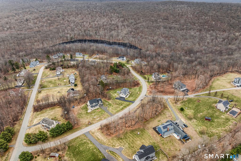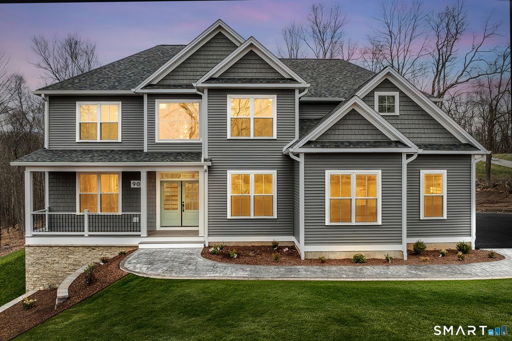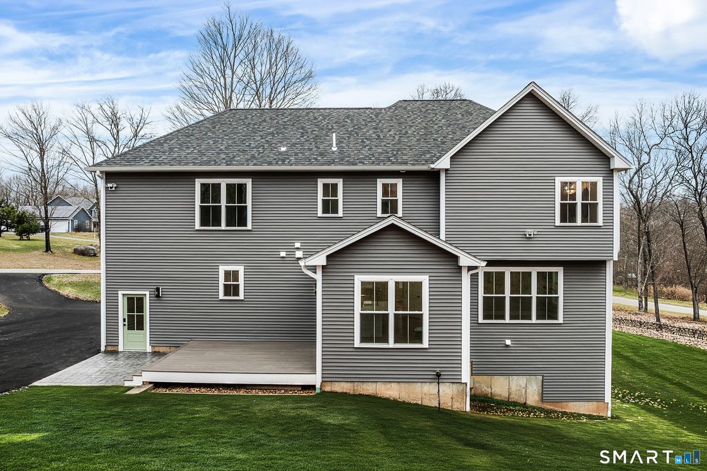 Newly constructed home offering over 3,100 sq ft of refined living space, privately set on 1.30+ acres in the desirable Chatham Ridge community, just minutes from Glastonbury. Thoughtfully designed with exceptional craftsmanship and elevated finishes, this home blends modern style with timeless design. The open-concept layout features 4 bedrooms, 4 bathrooms, and an oversized three-bay garage. A dramatic great room showcases a floor-to-ceiling geometric fireplace feature wall and expansive windows that fill the space with natural light, creating a striking focal point. The designer kitchen features a waterfall quartz peninsula with seating, full slab quartz backsplash, premium appliances, custom cabinetry with glass display accents, and a fully equipped butler's pantry. Upgrades include 9-foot ceilings on all three levels, extensive custom millwork, hardwood flooring throughout, designer tile, recessed lighting, triple-pane windows, and a high-efficiency three-zone HVAC system. Outdoor living features maintenance-free composite decking overlooking the private yard. A stamped concrete front walkway adds curb appeal, and the walk-out basement is pre-plumbed for a future bathroom and offers excellent potential for additional finished living space. Showings start 3/28/26
