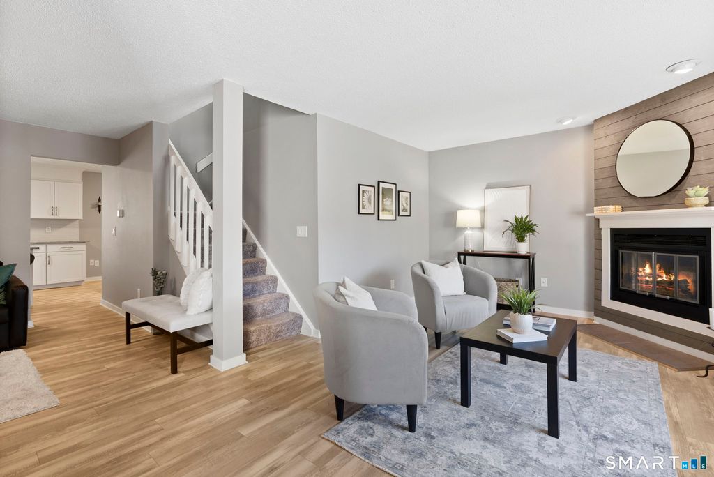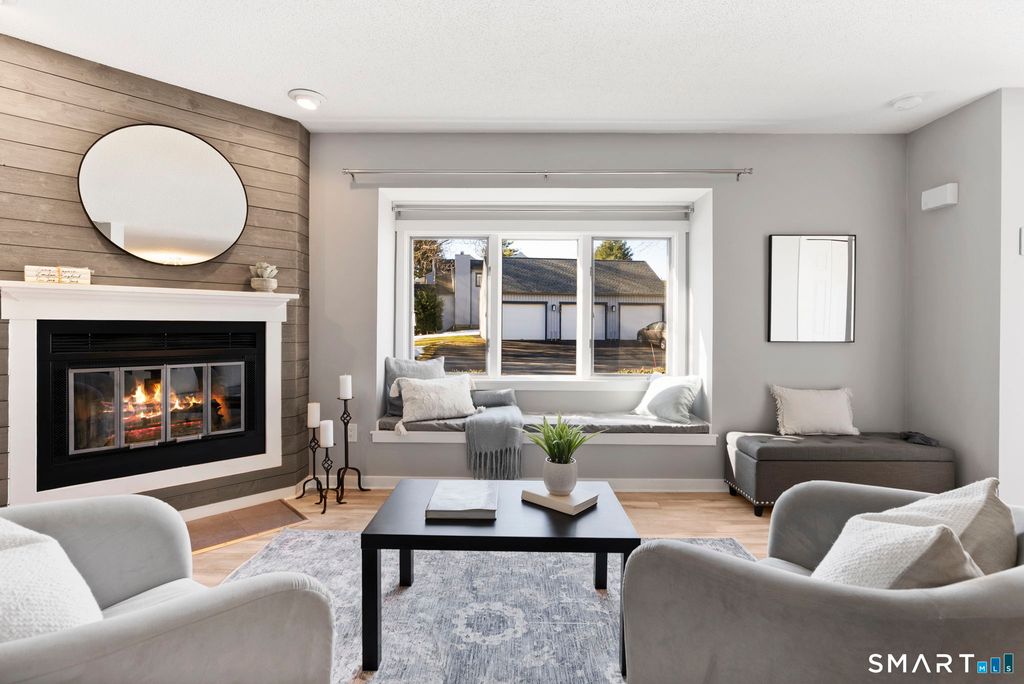 Move-in ready perfection on the Bristol/Farmington line! This immaculate two-bedroom, 2.5-bath condominium has been beautifully renovated with thoughtful updates throughout. The kitchen sparkles with crisp white shaker cabinetry, stainless steel appliances, granite countertops, and a center island-open to the dining area and leading to a relaxing screened porch.There is a light and bright living room with fireplace as well as a media room/family room for fun and games. Upstairs, two beautiful, generously sized bedrooms with ample closet space await. The primary suite boasts two walk-in closets and a private bath, while the second bedroom features a full bath and a cozy nook-perfect for a home office. One car detached garage with additional parking spot. New condensing unit with heat pump and newer hot water heater ensure comfort and efficiency. Light and bright and feels brand new! Easy living ~ everything has been done. Just pack your bags and move right in!