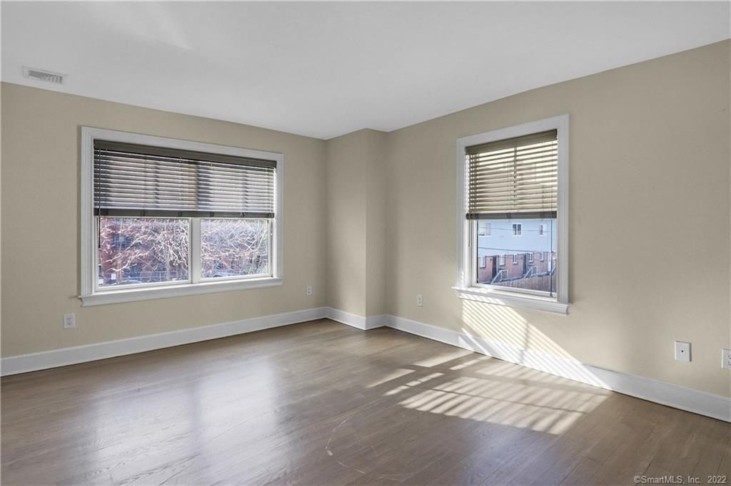Stunning Townhouse in Downtown Stamford! Just a short stroll from the area's large selection of cafe's, shops, restaurants, and more! Beautiful crown moulding and oak hardwood floors lead you through this bright and spacious end-unit. The main level includes a spacious living room with a fireplace, powder room, dining room with sliders to the balcony, and a chic kitchen with stainless steel appliances, granite countertops, and a beautiful backsplash. The second floor features two spacious, sunny bedrooms with plenty of closet space, full bathroom, and the added convenience of 2nd floor laundry! The 3rd floor master suite boasts soaring ceilings, a private balcony, walk in closet, and a luxurious en-suite bathroom with a stall shower and deep soaking tub for ultimate relaxation! This unit comes with 2 assigned parking spots adjacent to the unit. Quick drive to Metro North, I-95, and The Merritt Parkway for an easy commute to NYC!