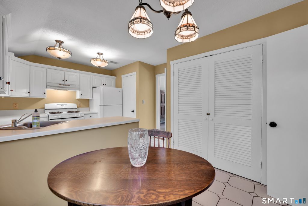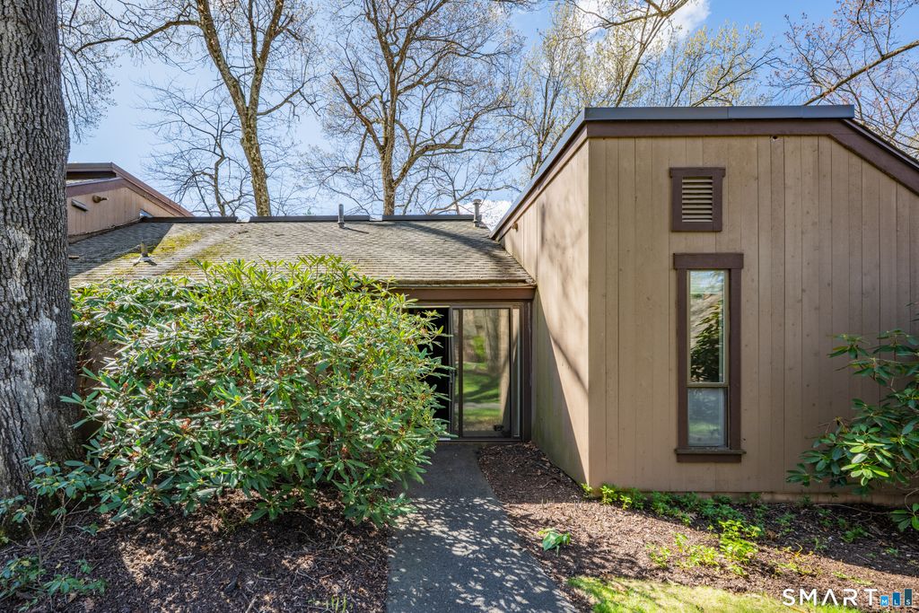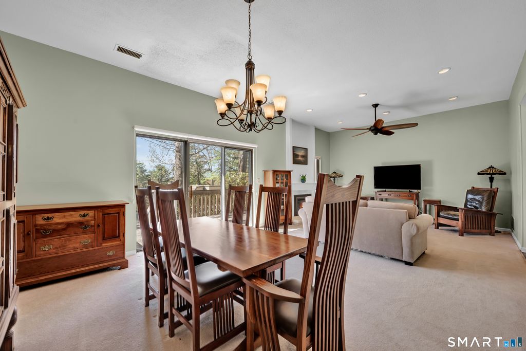 Spacious and sun-filled 2-bedroom, 2 full bath condo offering easy one-floor living and seamless access to a private deck-perfect for relaxing or outdoor entertaining. The living room features vaulted ceilings, a cozy gas fireplace and flows into the dining area and kitchen, which includes a gas stove, built-in desk with additional cabinetry, and a convenient pantry closet. The primary suite features a private bath, walk-in closet, and direct access to the deck. A second bedroom offers flexibility for guests or home office use. Additional highlights include wall-to-wall carpeting, washer and dryer conveniently located off the kitchen, efficient gas heat and new central air. Enjoy deck access from both the living room and primary bedroom, plus a detached 1-car garage with additional storage. Visitor parking is conveniently located nearby. Set in Farmington Woods; a well-maintained community offering a peaceful setting with golf course views.