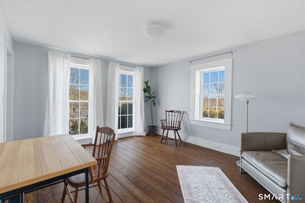 Perched above the Connecticut River, the Henry Green House is a beautifully preserved Georgian Colonial offering sweeping water views and timeless New England character. Nearly every front-facing window captures picturesque river views, filling the home with natural light and spectacular sunsets. Inside, original wide-plank hardwood floors, tall ceilings, and generously sized rooms reflect the craftsmanship of the 19th century while blending seamlessly with thoughtful modern updates. Multiple inviting living spaces include a bright sunroom perfectly positioned to take in sweeping river views. The kitchen features quartz countertops, updated appliances, & a cozy dining area with built-ins, while the formal living and dining rooms feature floor-to-ceiling windows that flood the spaces with natural light and frame beautiful Connecticut River views. Upstairs, 4 spacious bedrooms offer flexibility for guests, work-from-home space, or family living. Recent improvements include updated heating & cooling with central air, providing modern comfort in a historic setting. Outside, a bluestone patio bordered by classic stone walls opens to beautifully terraced gardens, creating a private outdoor retreat ideal for entertaining or peaceful evenings overlooking the Connecticut River Valley. Located near the heart of East Haddam Village, the home is minutes from the Goodspeed Opera House, the Gelston House, the Connecticut River boat launch, and the historic East Haddam Swing Bridge.