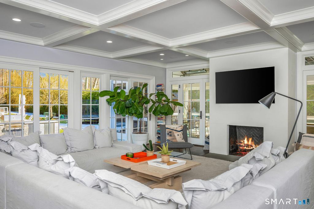 Architecturally stunning six-bedroom Colonial graces 2.29 level acres designed for resort-style living with pool, pool house, outdoor shower, stone terrace with kitchen & garden masterfully built in 2014. Beautifully appointed 6,117 sq ft interior brimming with exquisite details including high coffered ceilings, transom topped doorways & box molding. Striking double height foyer introduces ideal floor plan, perfect for everyday living & entertaining, anchored by chef's marble-clad kitchen which opens to large family room with fireplace flanked by doors to magnificent screened porch with industrial grade heaters & fireplace. Elegant dining room with fully equipped butler's pantry, stylish living room & office both with fireplaces, mudroom & two powder rooms round out this level. Sumptuous primary suite with fireplace, his/her walk-in closets, deluxe bath with radiant heated floors; two en-suite bedrooms, two bedrooms with Jack/Jill bath, homework area, laundry room comprise 2nd floor. Generous lower-level boasts media room with projector, game room, wine room with wine refrigerator, bedroom, full bath & generator. Unfinished top floor features ample storage & unlimited potential. Outdoor Kalamazoo gourmet kitchen is fitted with grill, pizza oven, smoker & kegerators. Incredible pool house (add'l 860 sq ft) includes custom kitchenette, half bath with outdoor shower & loft. Ideally located on professionally landscaped, private lot with fenced-in yard near all Darien offers.