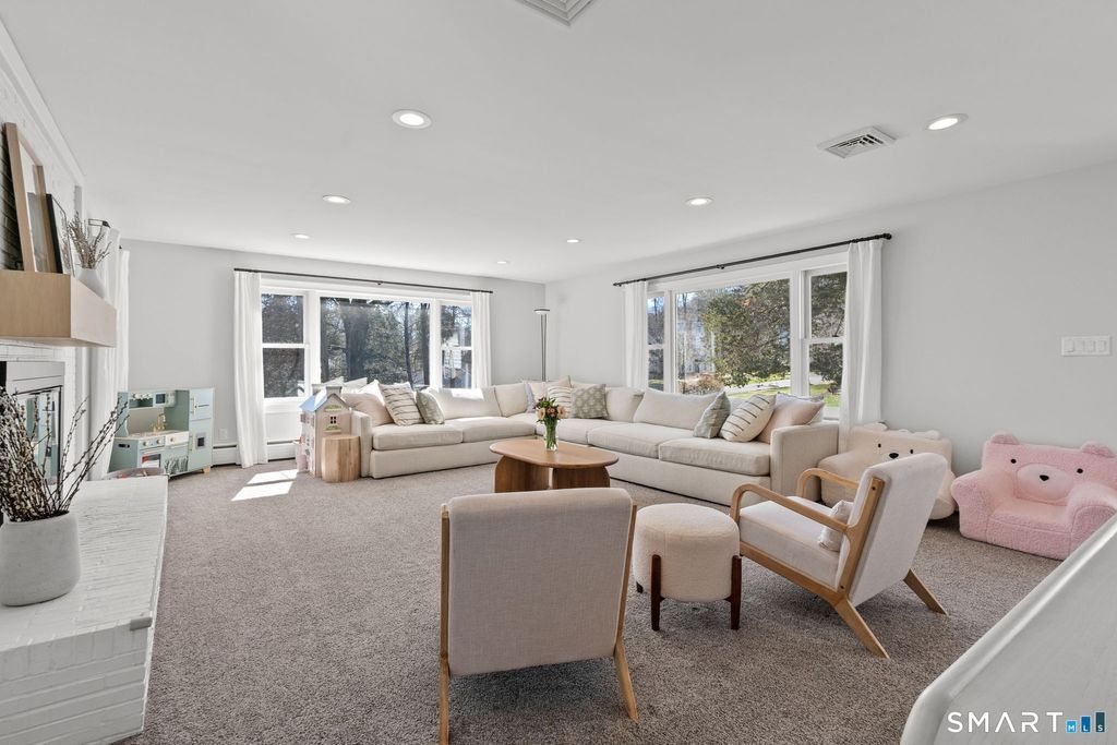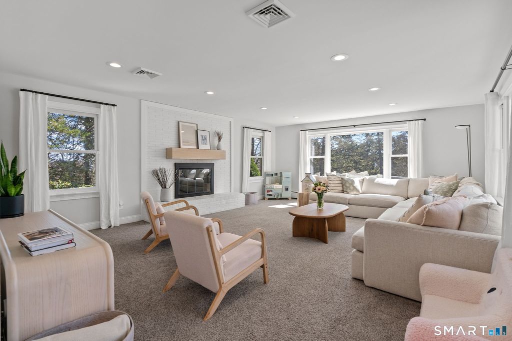 Welcome to 84 High Farms Road, a beautifully updated and thoughtfully designed home set near the top of one of West Hartford's most desirable streets. Offering over 2,600 square feet of living space, this 4-bedroom, 2.5-bath residence is filled with incredible natural light, enhanced by southern exposure and expansive windows throughout. The home features generously sized rooms and a seamless, inviting flow ideal for both everyday living and entertaining. A stunning living room-anchored by a white brick fireplace and walls of windows-creates a warm yet airy gathering space. The gracious dining room connects effortlessly to the updated kitchen. Complete with a large island, high ceilings, abundant workspace, and radiant heated floors, the kitchen also offers direct access to a screened-in porch and a spacious composite deck. Just steps away, an additional family room provides flexible space for a playroom, gym or office. Upstairs, a wide hallway leads to four well-proportioned bedrooms, including a primary suite with an updated en-suite bath and walk-in shower. A beautifully renovated hall bath with double vanity serves the additional bedrooms. Outside, the property shines with professionally landscaped grounds featuring flowers that bloom throughout the spring and summer months, creating a vibrant and welcoming setting. The level lot, set near a cul-de-sac, also includes a brick paver patio-ideal for entertaining and backyard gatherings.