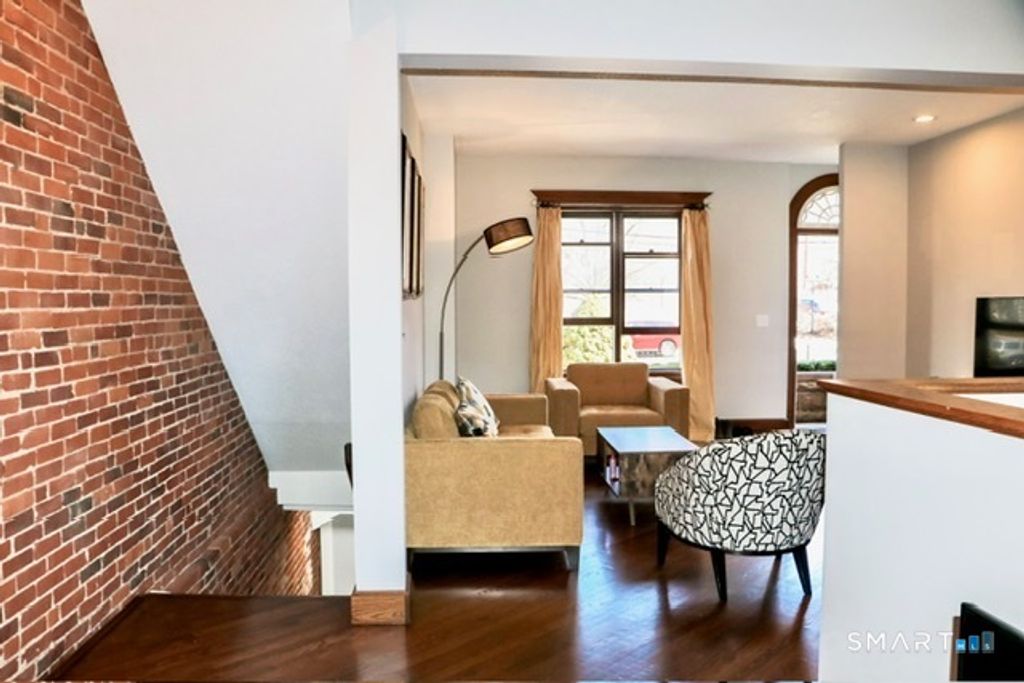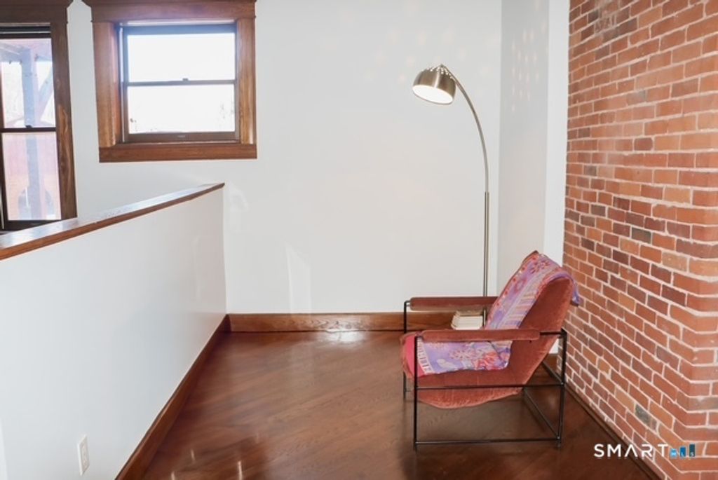 Discover sophisticated townhouse living in Hartford's desirable West End Historic District. This spacious two-story residence offers 1,381 sq ft, 2 bedrooms, and 2.5 bathrooms, blending historic character with thoughtful modern updates. The main level features a dramatic great room with vaulted ceilings, exposed brick, and refinished hardwood floors, creating a warm yet striking living space. A flexible home office or reading nook adds versatility for today's lifestyle. The lower level showcases a newly improved kitchen and dining area with new cabinetry, updated appliances, and an opened wall that enhances the flow with a more open layout. From the dining area, step out to a private patio/terrace, perfect for relaxing or entertaining. A convenient half bath and oversized laundry room complete this level. Upstairs, two generous bedroom suites each feature private full bathrooms. The primary suite includes a fireplace, ample closet space, and an updated bath, while the second bedroom offers abundant natural light and its own full bath. Recent upgrades include new kitchen cabinets, new stove and refrigerator, new gas heating system with thermostat, updated lighting throughout, new vanities and sinks in both bathrooms, and professionally cleaned dryer vent. Includes one carport space (#17). Located near parks, cafes, and restaurants, this distinctive home offers the perfect blend of historic charm and modern comfort.