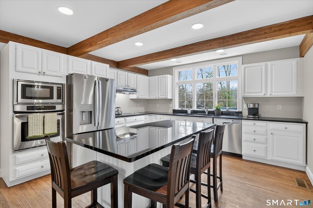 THANK YOU FOR YOUR INTEREST IN MARVIN RIDGE. PLEASE SEND HIGHEST AND BEST OFFER BY MONDAY, 3/23 BY 5:00PM. Welcome to this beautifully maintained home located in a desirable neighborhood near the New Canaan border and the sought-after Thayer Pond community. This inviting property offers the perfect blend of comfort, style, and convenience. Step inside to discover a bright and spacious floor plan featuring a two-story entrance, hardwood floors, beams, large windows, and an updated kitchen and baths. The kitchen is designed for both everyday living and entertaining, offering granite countertops, stainless steel appliances, custom cabinetry and a large, center island. It opens seamlessly to the family room, where a brick fireplace creates a warm and inviting living space. A stunning great room with cathedral wood ceiling, large brick fireplace and French doors overlooks the newer Azek mahogany decks and expansive yard, creating the perfect space for relaxing or hosting summer gatherings. The large yard provides plenty of room for sports, gardening, and outdoor entertaining. The first-floor primary suite provides a relaxing retreat with a beautiful new en-suite bath, with double sinks, stand-alone tub, shower and a large, walk-in closet. Upstairs you will find 3 additional large bedrooms, including one with its own an en-suite bath, along with a separate newly renovated full bath with double sinks and a tub with shower.