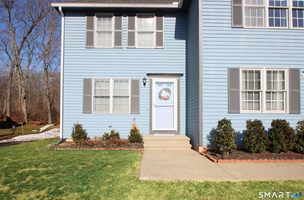 Tucked into a quiet corner of a desirable eastside Wallingford complex, this 3-bedroom end unit offers privacy, wooded views, and a highly convenient location. Beautifully maintained, the home features 2 full bathrooms, a garage, and a full basement with excellent storage or future expansion potential. Inside, a bright living room with attractive flooring flows into the eat in kitchen, complete with granite countertops and newer stainless steel appliances. Just off the kitchen, a brand new Trex deck overlooks the wooded buffer behind the complex. A first floor bedroom offers flexibility and could easily serve as a home office, and the main level also boasts a newly updated full bathroom with a tiled walk-in shower. Upstairs, you'll find two additional bedrooms and a second full bathroom. Also living in this FHA-approved complex is the benefit of Wallingford Electric's utility. Conveniently located near New Haven, Hartford, and Middletown, and just minutes from Quinnipiac University's North Haven campus.