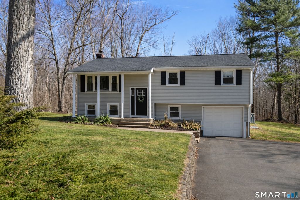 This inviting and well-maintained 3-bedroom raised ranch with a finished lower level and over an acre of privacy reflects true pride of ownership, set on a private 1.03-acre lot in a peaceful natural setting. Step inside to a warm, welcoming layout featuring gleaming hardwood floors and a bright, open flow between the living and dining areas with a cozy electric fireplace-perfect for everyday living and entertaining. The updated kitchen offers granite countertops, quality Thomasville cabinetry, and direct access to a deck overlooking a private backyard that's ideal for relaxing or hosting gatherings. The main level includes a spacious primary bedroom with double closets and an updated half bath. Two additional bedrooms, a renovated main bathroom and a coat closet complete this living space. The finished lower level provides additional living space with newer carpeting, a charming brick fireplace with a wood stove insert, a laundry area, ample storage, and direct access to a one-car garage. Thoughtfully maintained and improved over the years, this home includes major updates to key systems and components such as the septic system, roof, siding, windows, mechanicals, and so much more (see attached features list for full details). From the beautifully updated interior to the serene outdoor setting, this home offers comfort, quality, and space both inside and out - all a true reflection of pride of ownership. This is a home that welcomes you the moment you arrive!