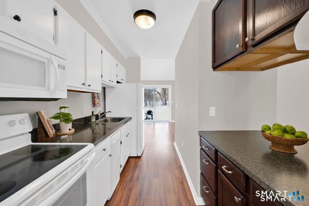 Adorable End-Unit Townhouse - Privacy, Comfort & Convenience Why rent when you can own? This charming end unit offers theperfect entry point into homeownership, combining smart design with everyday practicality. Step inside to an eat-in kitchen with alarge pantry and a spacious living room featuring a cathedral ceiling that creates a bright, open feel. A sliding door leads to yourprivate patio, and a convenient half bath completes the main level. Upstairs, the generous primary bedroom with full bath provides aquiet retreat. The lower level includes washer and dryer, plus a partially finished basement ideal for a home gym, recreation room, oradditional living space-with plenty of storage. Freshly painted, professionally steam-cleaned carpets, and newer window treatmentsmake this home truly move-in ready. Located near shopping, dining, commuter routes, Interstate 84, and UCONN, this propertydelivers on style, convenience, and affordability.