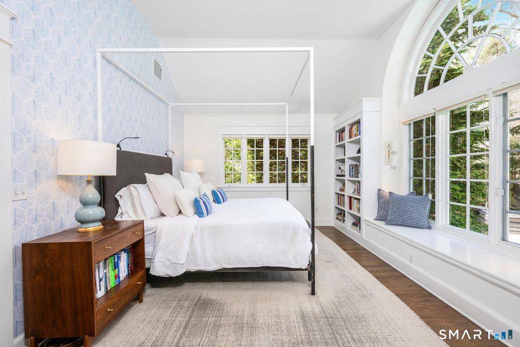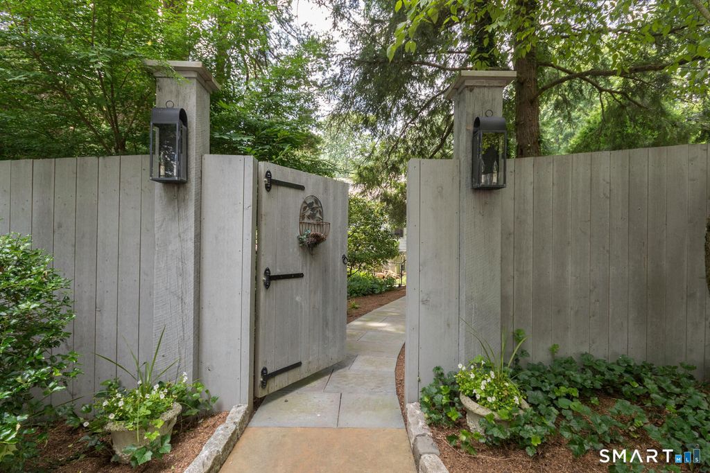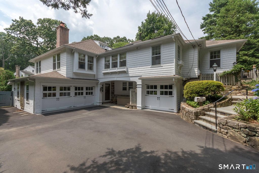 Few homes in Darien offer this combination: five bedrooms, five indoor entertainment spaces, a private elevator, gunite pool, hot tub, and pool cabana with wet bar-all on a private .70-acre lot in the Tokeneke School district. Fully updated 2021-2026 and just a walk to Metro-North and downtown. Spanning three fully finished floors, the main floor is built for living and entertaining: a formal living room with fireplace, sunroom with, family room with fireplace, and a renovated chef's kitchen open to the dining room, featuring new cabinet doors, hardware, countertops, sink, faucet, pantry, and updated lighting. The primary suite features a dressing room and a cedar walk-in closet. Upstairs: home office and home gym. The at-grade lower level-built into natural ledge with no below-grade space-opens via French doors directly to the pool and features a pool entertainment room, three bedrooms, playroom, game room, cabana with wet bar, a mudroom, and two attached garages (a two-car garage and a separate third garage bay). Outside: gunite pool, new hot tub (2025), new pool heater (2024), pool cabana with wet bar and fridge, stone patio, large custom playset, full irrigation, fenced yard, and professional landscaping. Updated 2021-2026: two central A/C units, Ecobee smart thermostats, new appliances, refinished hardwood floors, renovated bathrooms, and painted exterior. No deferred maintenance. A private world of its own.