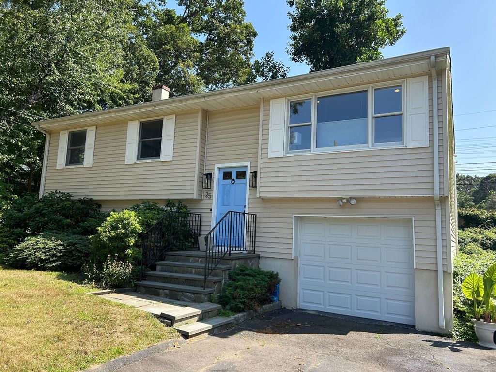 Immaculate Raised Ranch in Rowayton - A Commuter's Dream! Seize the opportunity to reside in this beautifully raised ranch, tucked away at the end of a peaceful cul-de-sac, steps from the Rowayton train station. This home spans 1,754 sq ft with 3 bedrooms and 2 full baths, offering comfortable living across both upper and lower levels. The kitchen dazzles with granite countertops and stainless appliances, flowing seamlessly into the spacious family room. A finished lower level with walk-out access leads to a charming flagstone patio-ideal for indoor-outdoor living and entertaining. The home sits on nearly an acre of level land with a serene pond frontage, a large deck (built in 2021), vinyl siding, and an attached garage. Modern comforts include central air, heating via propane (with a Bosch boiler installed in 2017), and an updated mechanical system throughout. Located in a top commuter corridor, this home bridges quiet suburban charm with convenient access to shops, water views, schools, and transit. Don't miss out-this one won't last long!