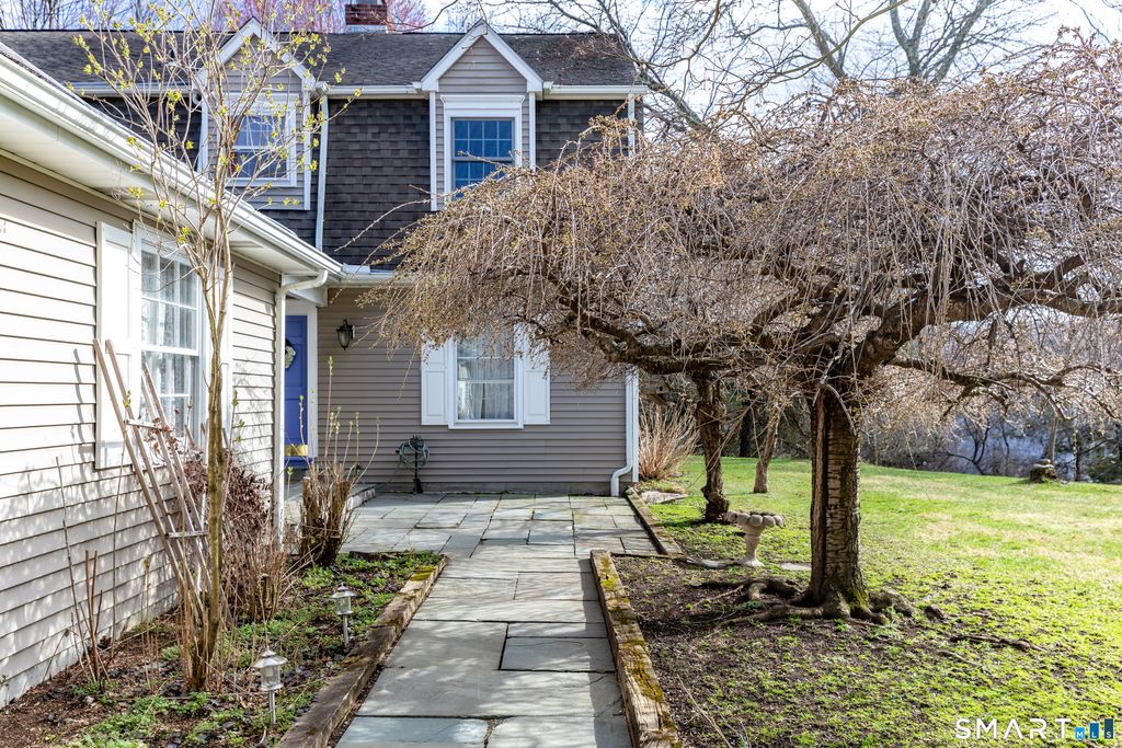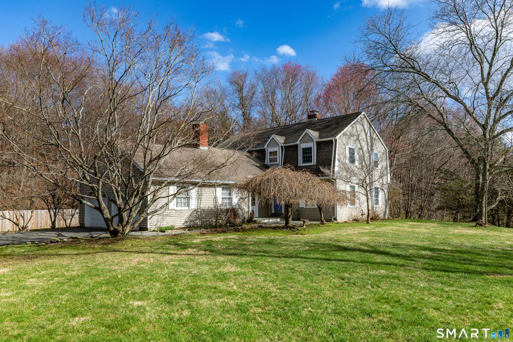 Tucked away on a quiet cul-de-sac just 1/2 mile from the New York state line, this home offers an appealing blend of privacy and convenience on two level acres in a tranquil, natural setting. The main level features generously sized rooms, including an eat-in kitchen with sliders to an exterior deck - ideal for indoor-outdoor living. The dining room and family room flank the kitchen, with the family room offering a cozy fireplace and leading to an expansive 26' living room with a striking stone fireplace. Bright spacious interiors create inviting spaces for both everyday living and entertaining. A welcoming foyer, full bath, and combined laundry/mudroom complete the main level. Upstairs, the primary bedroom suite is accompanied by three additional bedrooms, providing ample space for family and guests. Hardwood floors and abundant natural light on the inside, and mature specimen trees and plantings on the outside, enhance the home's appeal. While the home might benefit from updates, its exceptional floor plan, peaceful setting, and prime location offer tremendous upside potential. Sherman residents enjoy access to a town park with tennis courts, jogging track, playground, and beach on Candlewood Lake. Conveniently located just 90 minutes from Manhattan and minutes to the train, this home offers the perfect balance of country charm and commuter accessibility. Subject to probate approval and offered in "as is" condition. A wonderful opportunity to make it your own.