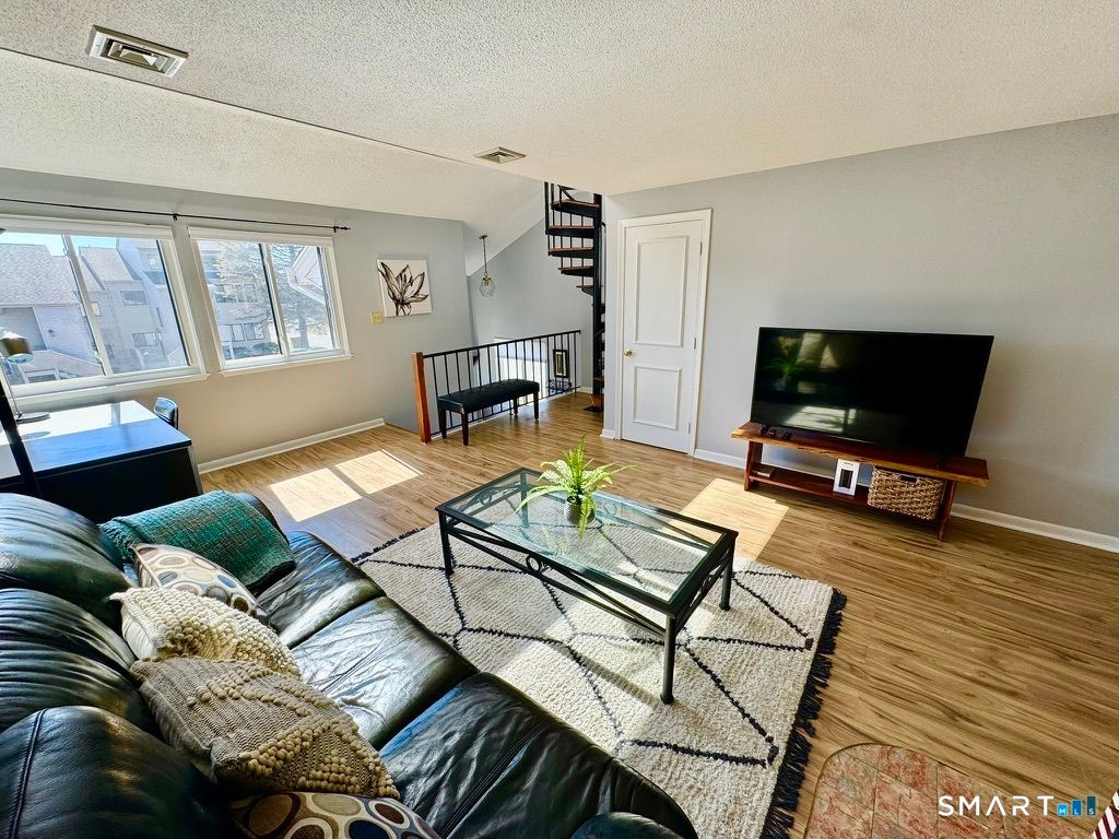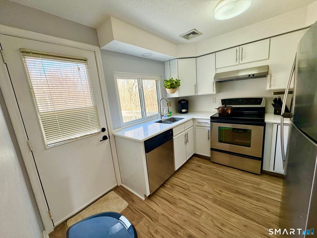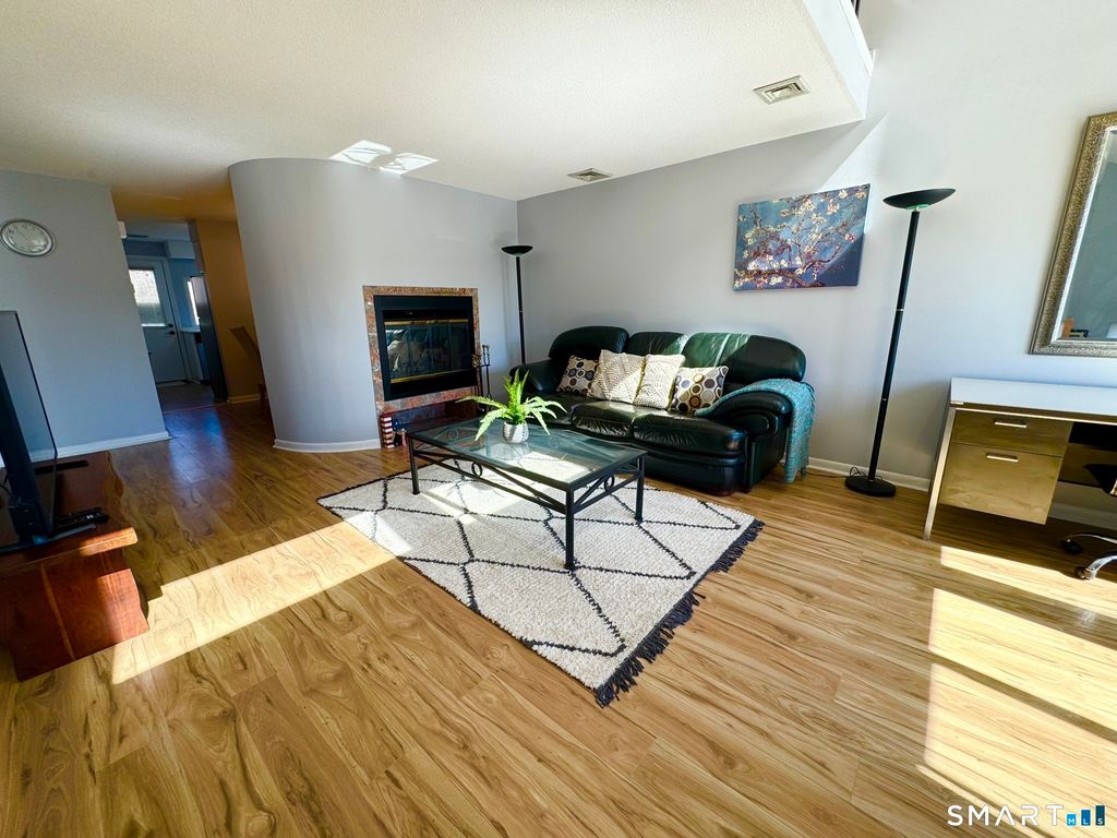 **Upgraded Townhouse ** Located in the heart between Farmington, West Hartford and New Britain town line, this newly renovated townhouse boasts three bedrooms, two baths and an impressive 1,357 square feet of living space. The main floor seamlessly integrates the living room, dining area, and 2 bedrooms all connected along with an in unit washer/dyer. The stairs lead to 3rd bedroom loft with en suite bath and tons of storage space. The private deck overlooking a tranquil forest and a spacious backyard. The absence of neighboring views enhances the unit's tranquility. The updated white kitchen featuring quartz countertops, stainless steel appliances, and a new central air and heating system. Engineered hardwood floor thoughout, newly painted and tons of natural light in every corner. The townhouse offers 1 assigned parking spot in front and extra guest parking. Residents will also enjoy the proximity to the clubhouse, pool, Stanley Loop trail, commuter parking lot, and the West Farm Mall, Target, Costco,Central Connecticut State University and UConn Medical Center. With its exceptional location and maintenance-free living, this townhouse is an ideal choice for people seeking a comfortable and convenient lifestyle. The unit is fully furnished and move-in ready.