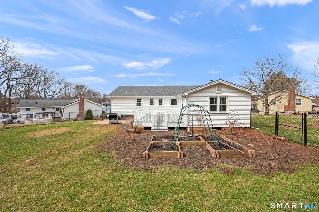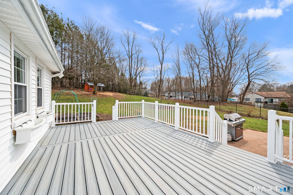 Welcome to 47 Eckert Rd, a meticulously maintained 3-bedroom, 2.5-bathroom Raised Ranch perfectly situated on a quiet cul-de-sac in Newington. This home offers approximately 2,218 square feet of total living space, including a spacious finished basement featuring a cozy fireplace-perfect for relaxing or entertaining. The heart of the home is the updated eat-in kitchen, which boasts elegant granite countertops, a convenient breakfast bar, a new tile backsplash, and a suite of modern stainless steel appliances. Comfort meets efficiency with vinyl windows throughout, a new central air system with a high-efficiency heat pump (2022), and a reliable gas heating system. The electrical infrastructure has also been modernized with a 200 amp service upgrade (2019). Recent significant exterior and interior upgrades provide peace of mind for years to come: New Asphalt Roof (2025), New composite deck overlooks a fully fenced yard (2023), ideal for outdoor gatherings. New front and rear entryways, including a new storm door. Brand-new carpeting just installed in the downstairs living area. Additional maintenance highlights include a professionally serviced furnace and water heater (March 2026) and the installation of a bathroom exhaust fan (2022). With a 2-car under-house garage and over half an acre of land, this home is truly move-in ready.
