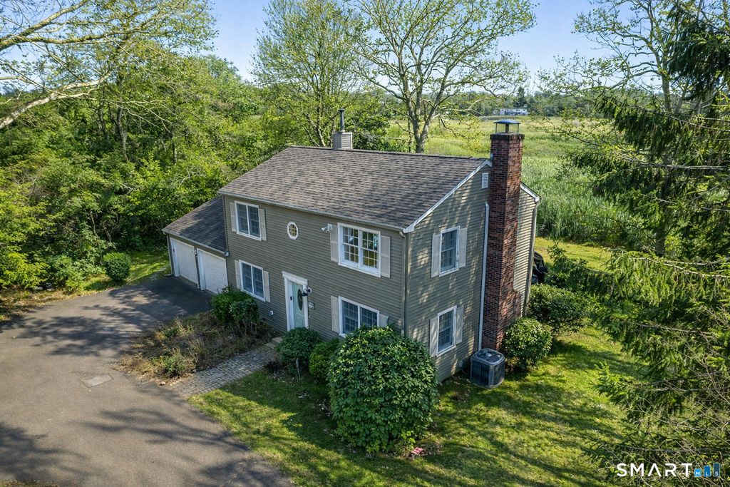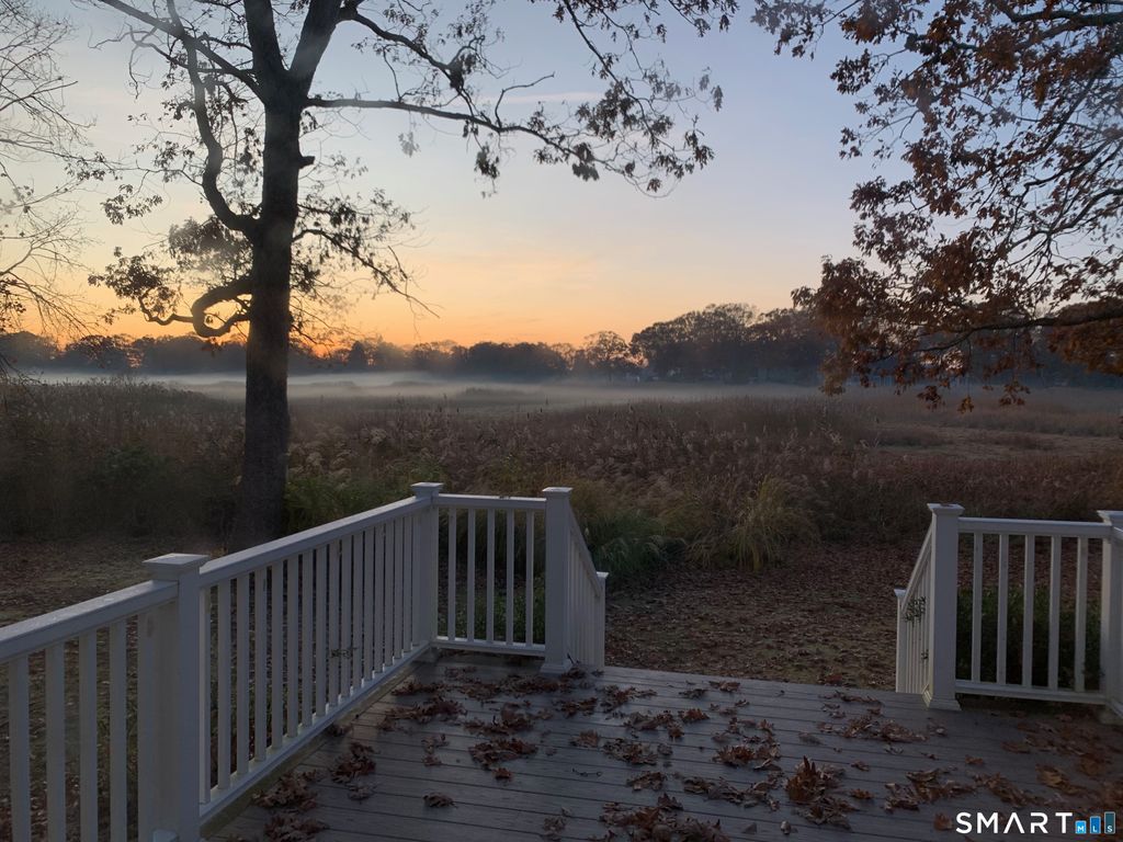 Tucked away in a tranquil setting overlooking an ever changing tidal marsh, this exceptional coastal retreat offers a rare blend of privacy, natural beauty, and coveted deeded access to Cornfield Point Beach just a short stroll away. Privately set on 1.44 acres and approached by a charming bridge, the property feels like a hidden sanctuary while remaining just moments from the vibrant heart of Old Saybrook. The picturesque grounds are framed by flowering trees and thoughtfully curated perennial gardens, creating a peaceful and inviting backdrop for this timeless colonial. Inside, the home features three bedrooms and three beautifully renovated bathrooms, with rich hardwood floors flowing throughout. A spacious front to back living room with a fireplace provides a warm and welcoming space for both everyday living and entertaining. The formal dining room opens seamlessly to a well appointed kitchen with quartz countertops, stainless steel appliances, floating shelves, and abundant cabinetry. French doors from both the living and dining rooms lead to an expansive deck overlooking the marsh, offering a serene outdoor retreat ideal for morning coffee, sunset views, or gatherings with friends. An attached two car garage adds everyday convenience. Ideally located just minutes to Main Street, local marinas, Fenwick Golf Course, The Kate, and train access to New York and Boston, this is a rare opportunity to enjoy the very best of shoreline living year round or as a weekend escape.