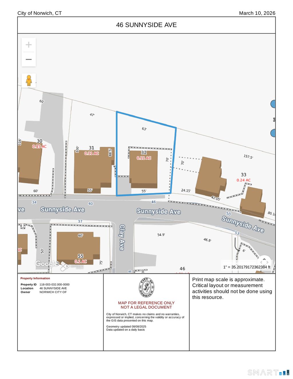 0.11 Acre land parcel in Norwich with R20 zoning per public records. Seller and agent make no warranties regarding utilities, zoning, or buildability. Property is being sold as-is, where-is. Cash only. City-owned properties clearly state that the sale is "as-is" and that the conveyance will be by Quit Claim Deed, with no warranty and no title search provided by the City.