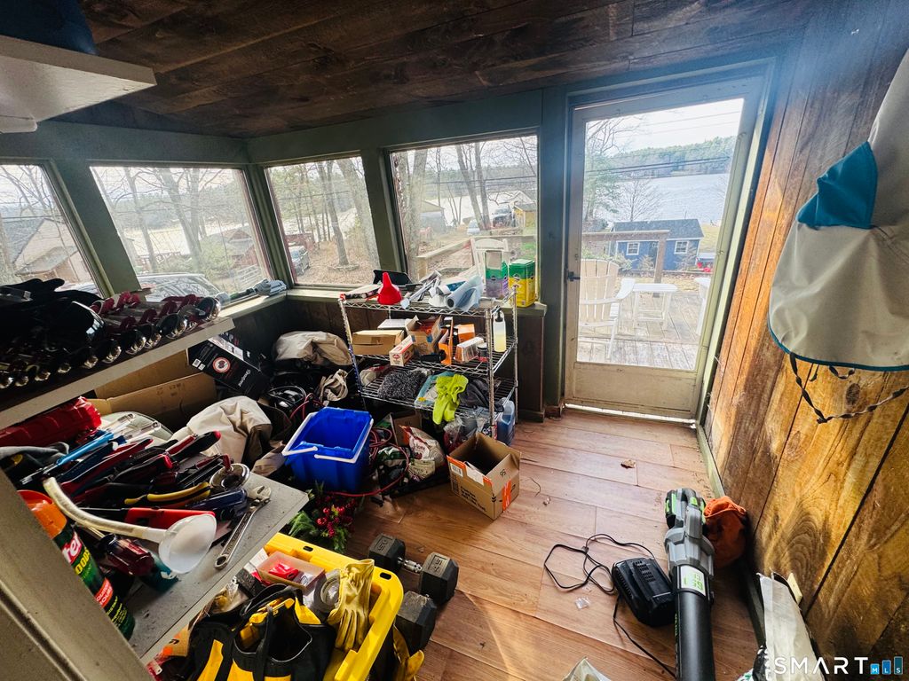 WATERVIEW home with WATER RIGHTS to Quaddick Lake! PRIMARY bedroom on upper level has VAULTED ceiling, skylight and a beautiful view of the water with a primary bathroom w/ GLASS shower door and TILED shower, TILED floor and there is also a loft area for an office. First floor has a BRIGHT large bedroom that leads to deck and laundry room. (Washer is 2025 and both conveying.) Open floor plan has APPLIANCE kitchen (refrigerator is 2024), island, plenty of cabinets, leads out to covered porch, dining area, and another covered porch. Living room has HARDWOOD floor and 1st floor full bathroom. Sit on the 6 x 22 front deck and enjoy the sunsets. Carport in parking area and SHED conveys. 1643 sqft! Some peeling paint and side deck needs repair or replacement. RELOCATION - looking for a QUICK closing! Sold as is. Generator hookup.