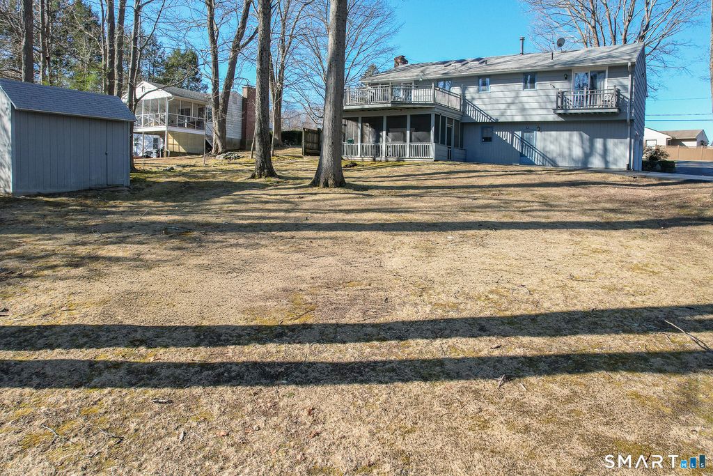 ENJOY SWEEPING WATERVIEWS from this beautifully maintained 3-bedroom raised ranch offering the perfect blend of comfort, style, and functionality. The main level features a spacious kitchen with custom oak cabinetry, Corian countertops, vaulted ceilings, skylights, and stunning oak woodwork throughout. Prefinished hardwood flooring runs seamlessly across the entire level, leading to three generously sized bedrooms. The primary suite is a true retreat with a walk-in closet, full bathroom with walk-in shower, and sliders opening to a private balcony overlooking the water. A full bathroom on the main level includes a convenient washer and dryer closet and a large double-sink vanity. The fully finished lower level offers incredible additional living space, featuring a walkout, half bathroom, gas fireplace, and an expansive bar area-perfect for entertaining or relaxing. Step outside to enjoy multiple outdoor living spaces, including a covered screened-in porch beneath the deck and a charming patio area-ideal for relaxing or hosting while taking in the stunning lake views. Additional highlights include central air (approx. 2 yrs), 3-zone hot air heat, whole house fan, city water & sewer, private dock, oversized shed, and a large 2-car garage with extensive storage and workshop space. Enjoy direct access to Tracey's Pond with year-round recreation including fishing, kayaking, canoeing, electric boating, and ice skating. MOVE QUICK!