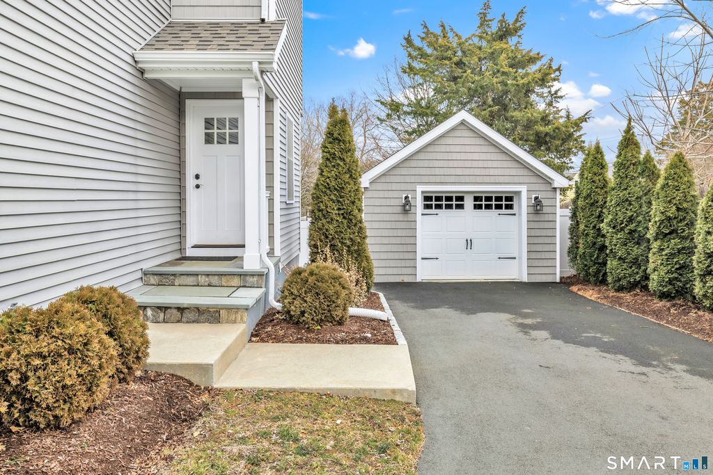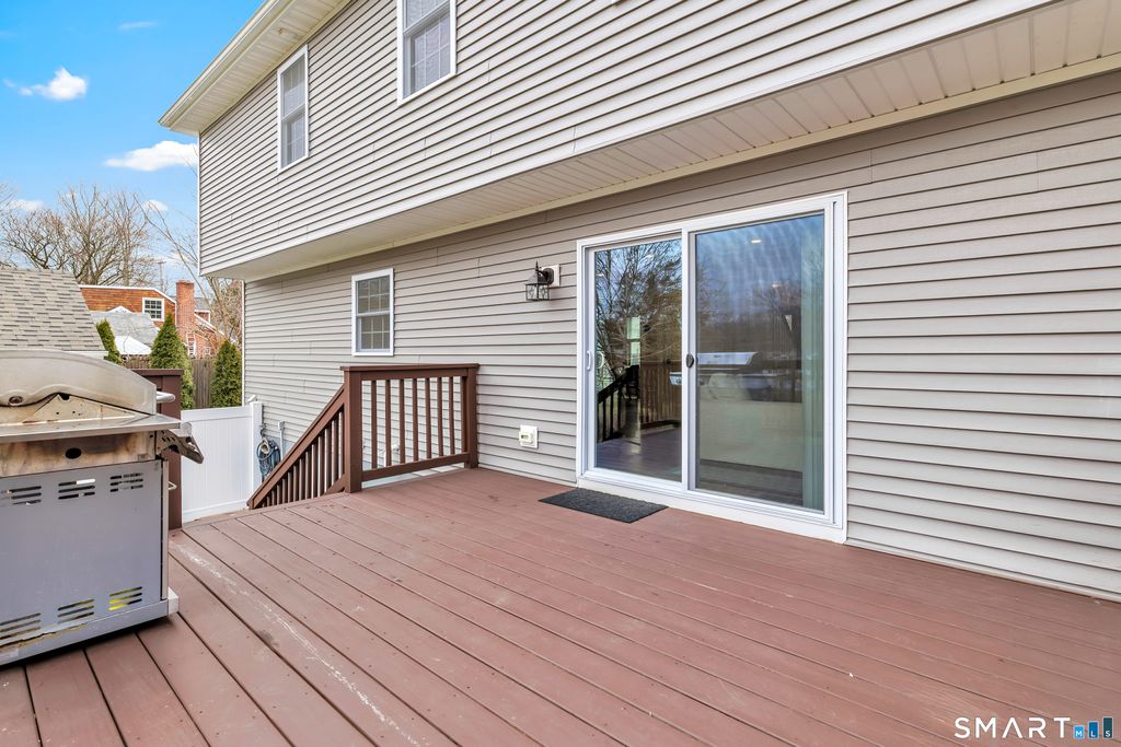 This beautifully maintained Colonial blends modern updates with timeless style. The bright, open-concept layout features hardwood floors and a seamless flow, perfect for everyday living and entertaining. The kitchen offers custom gray cabinetry, quartz countertops, stainless steel appliances, and a spacious island. A powder room and separate laundry area add convenience. The living room, centered around a gas fireplace, opens to a large deck for easy indoor/outdoor living. The fenced backyard includes thoughtfully placed landscaping that provides seasonal privacy. Upstairs, the primary suite features a full bath with double sinks and a customizable walk-in closet. Two additional bedrooms with ample closet space share a full bath. The partially finished basement provides flexible space for a home office, gym, or playroom. Additional features include central air and smart home technology. Located in desirable Fairfield, close to beaches, shops, restaurants, parks, top-rated schools, and commuter options to NYC, this home offers comfort, convenience, and a great lifestyle.