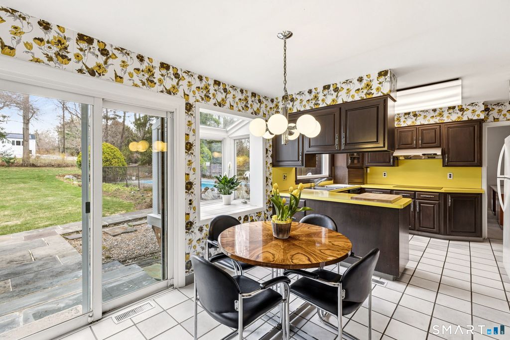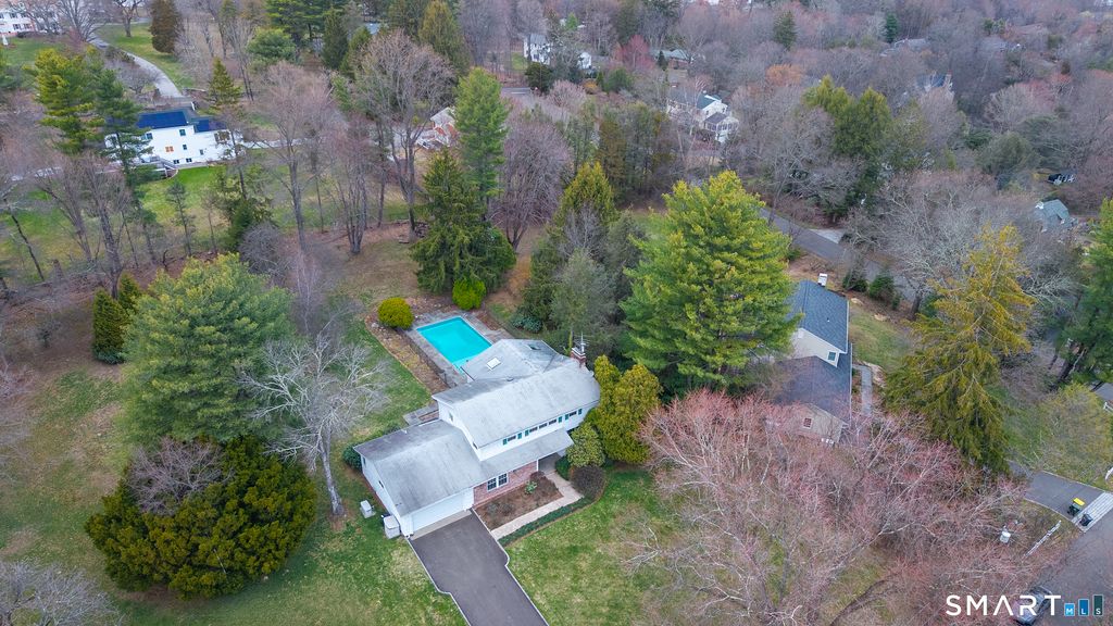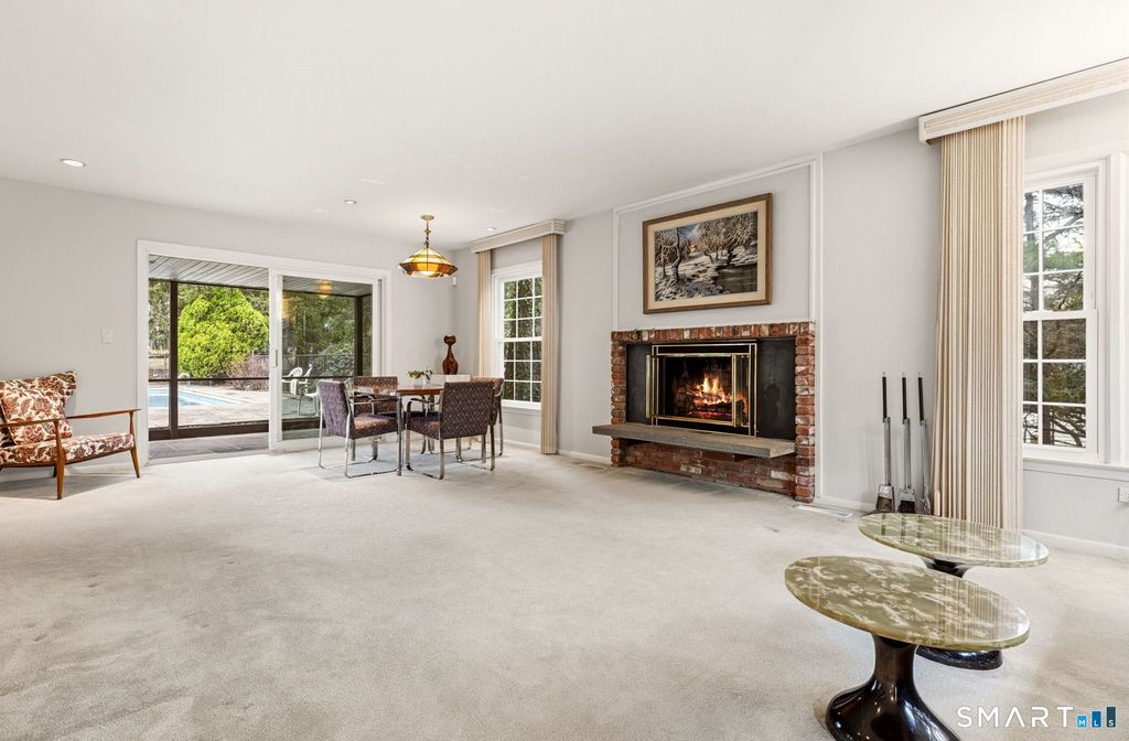 Designer-owned CT Garden House. A rare North Stamford offering, owned by a classic mid-century modern furniture designer & a gifted gardener-where design & nature live in harmony. Set on a coveted cul-de-sac, a daffodil-lined path leads to striking Art Deco front doors. Inside, a sun-filled Colonial enhanced w/Mid-Century Modern styling blends clean lines with timeless detail. Lovingly maintained, the first floor unfolds beautifully with an inviting eat-in kitchen, formal dining room, & a spacious living room centered around a wood-burning fireplace. Expansive screened-in porch overlooks garden-wrapped pool & large grassy yard. A large home office, family room & full bath give a seamless & flexible layout for today's living. Thoughtfully designed and w/handicap accessibility in mind, featuring a ramped two-car garage, easy flow, & potential for a first-floor bedroom w/adjacent full bath & zero-entry access. Upstairs offers four generous bedrooms. The primary suite includes a sitting room w/cozy brick fireplace, walk-in closet, & a vaulted marble bath w/jacuzzi tub, double sinks, walk-in shower w/body sprays, & private water closet. Full basement is ready to be finished. Full attic & generous storage throughout. Extraordinary gardens w/perennial beds & mature plantings. Large backyard offers room for expansion. Backup generator. Walk to Bartlett Arboretum & Stamford Nature Museum trails. Quick to Merritt Parkway & Scotts Corners, NY. North Stamford at its most refined!