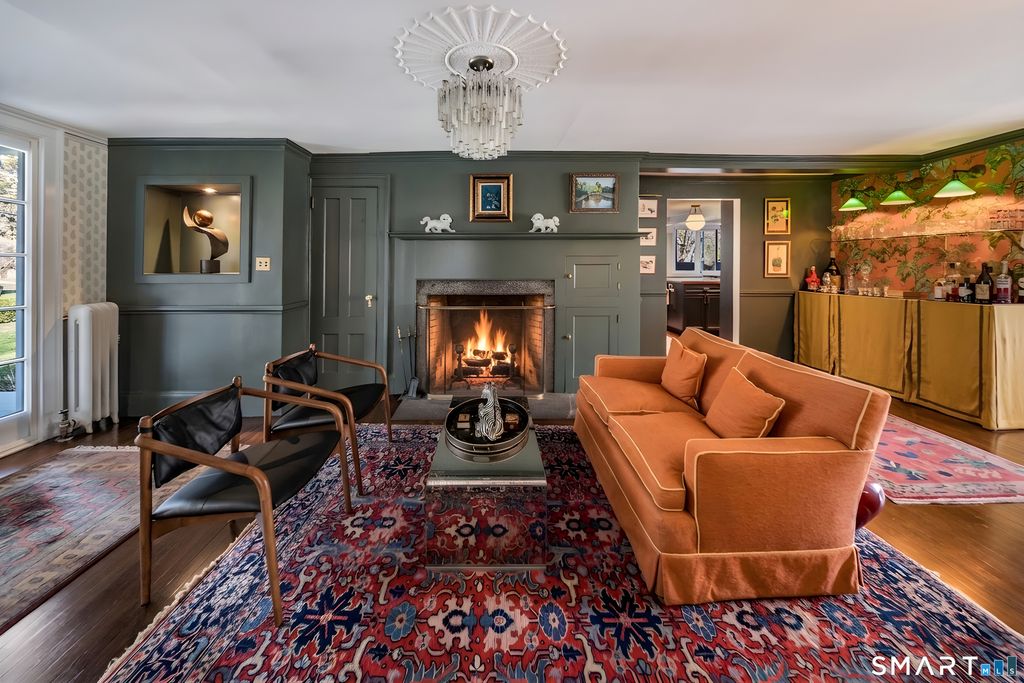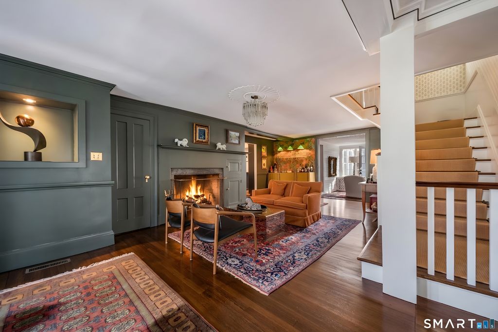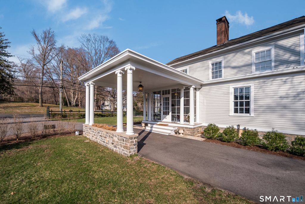 Move into this elegantly designed, meticulously restored estate in the nationally registered historic village of Ivoryton in the town of Essex. Built by the prominent Essex industrialist, Samuel Comstock, the 5,400 sq. ft. property on 1.86 acres offers history and grandeur to those seeking privacy and tasteful opulence. Preserved in the same family for five generations and recently completely re-designed and updated, this home is ideal for grand entertaining, large family gatherings, and other unique experiences. Historic details have been preserved throughout, complemented with an updated chef's kitchen, butler's pantry, and new appliances. Thoughtful, custom interior design elements feature prominently in the grand living room and multiple seating areas. The ample 5 bedrooms and 5 1/2 bathrooms have been tastefully updated while retaining timeless architectural elements. Old world charm can be experienced in the renovated 3 season sunroom. Two separate home offices make working from home a pleasure. Outside, newly landscaped grounds mingle with century old trees and shrubs. New formal hedges, hydrangea gardens, fencing, and bluestone patios offer privacy, seclusion, and outdoor enjoyment unique for a property inside the village. The 20 x40 gunite pool is perfect for exercise and recreation alike. A newly constructed 2-car garage can accommodate electric vehicles or store vintage cars. Truly unique and like no other. A rare opportunity.