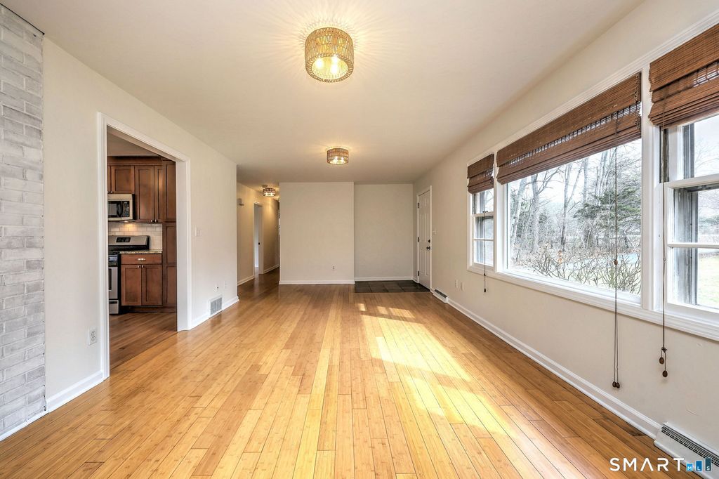 Bright and sunny 3-bedroom ranch designed for easy living. The home offers low-maintenance interiors with sustainable bamboo floors and a comfortably sized primary bedroom with full bath. Enjoy a spacious yard and a large deck just off the kitchen-perfect for dining and entertaining outdoors-plus the convenience of a 2-car garage. Located in the award-winning Amity school district, close to shops, restaurants, and downtown New Haven.