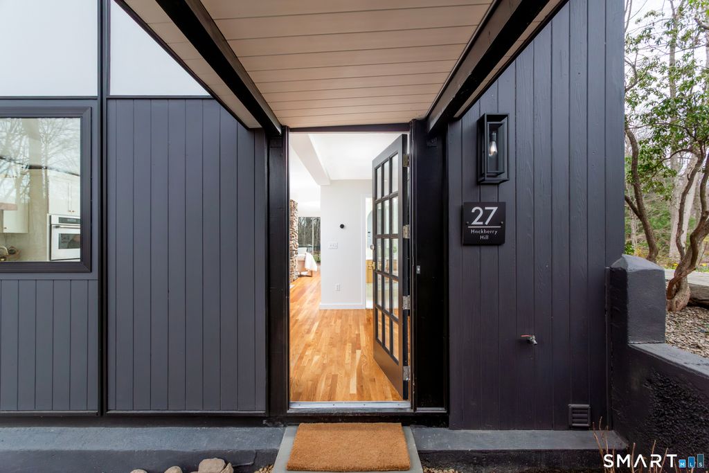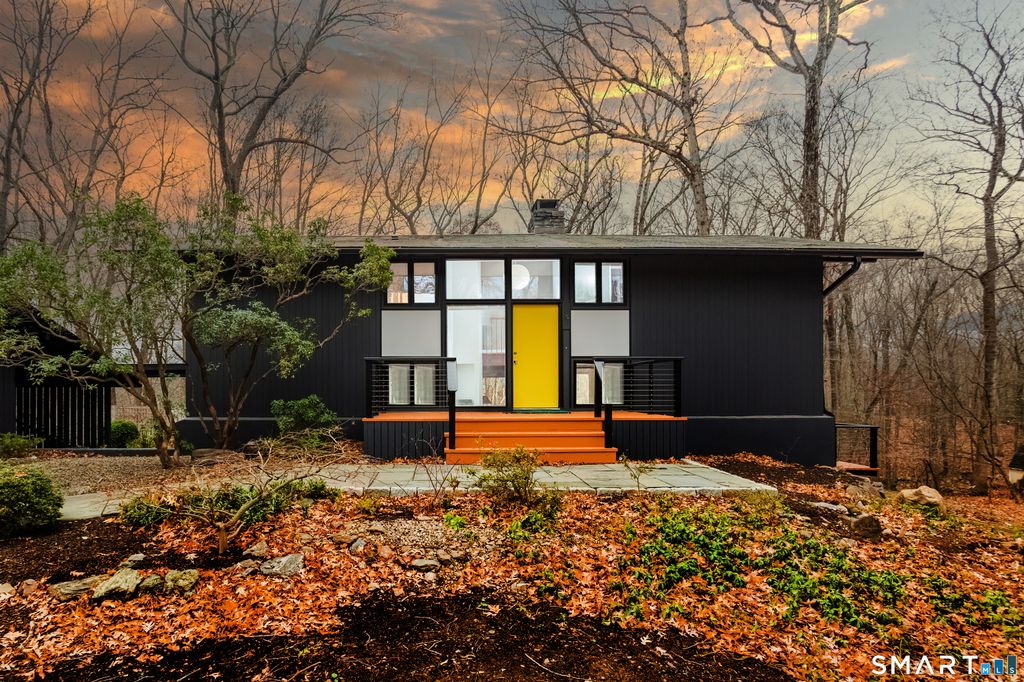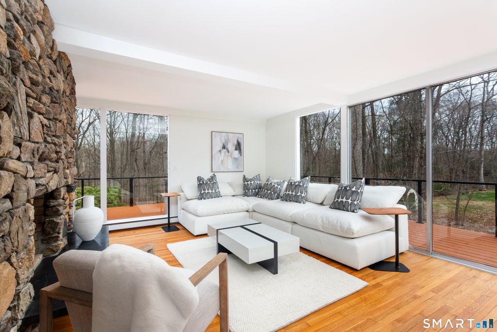 Prepared to be awe-struck! This totally renovated/updated mid-century modern home is a naturalist's dream with walls of glass that allow for light filled spaces & a calming vibe. A two-sided field stone fireplace anchors the living spaces including the brand new kitchen featuring a 10x6 quartz topped center island & new windows overlooking the magical zen courtyard/garden with flowering trees and shrubs. Top of the line stainless steel appliances include Bosch DW, Thermador double ovens and Wolf cooktop... all at the ready for preparing fabulous meals! There is tons of cabinetry and a fireside sitting area to relax and enjoy the calm. The living/dining room also enjoys the fireplace and is drenched in sunlight with sliders to the newly stained wrap around deck with new wire railings providing open views of the beautiful 2.3 acres of property. Upstairs offers 2 family bedrooms and new hall bath as well as the primary suite w/ new ensuite bath & a large dressing room/walk-in closet. The above grade lower level w/ fireplace has been completely redone & has flexible space to suit a variety of lifestyles including 4th BR w/ new bath and closet, office or playroom and has sliders leading to patio w/ newly constructed stone walls. There are newly refinished hardwood floors and paint throughout, new furnace, new hotwater heater new oil tank & newly upgraded 200 amp electrical. All of this & more located just moments from Weston's charming town center and award winning school campus!