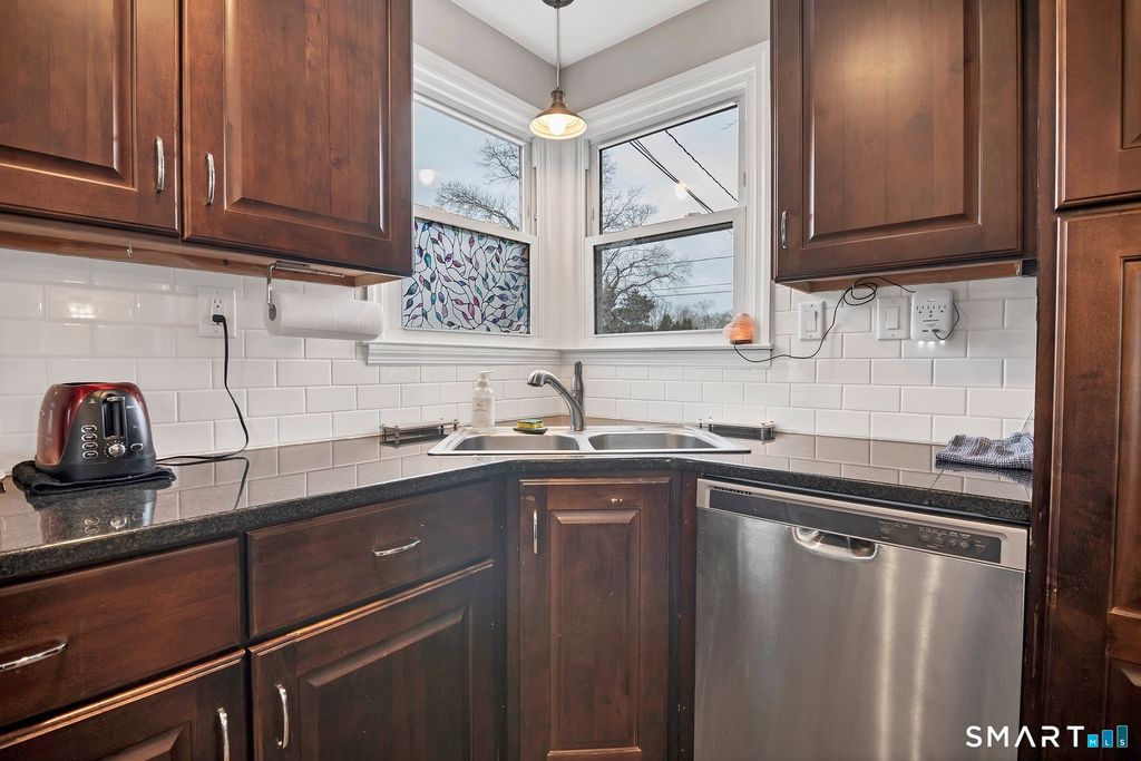 Charming 3-bedroom, 2-full bathroom split level home on a corner lot in the Ridgewood Park neighborhood. Located between Harkness Park and Ocean Beach, the water is just around the corner. Enjoy the beach life by launching your kayak at Alewife Cove or stroll/bike to the beach. This 1,500 sq ft split level home feature a 1 car detached garage, large rear wood deck and a front covered porch to relax on those warm Spring days. This sun-filled open floorplan boasts gleaming hardwood floors throughout as well as two bedrooms and a full bathroom on the first floor. The updated eat-in kitchen is appointed with granite counters, natural wood cabinets, double SS sink, subway tiled backsplash and a large breakfast bar/island. Slider access off the dining area to the rear deck is the perfect layout for entertaining friend and family alike. The large second floor living room is the perfect place to relax after a long day boasting hardwood floors, a large skylight as well as access the third bedroom and second full bathroom offering a pedestal sink, stand-up shower stall and pocket door. Updates include newer hot water heater (2023), New stove (2025) and dishwasher (2020). Public water and public sewer. This move-in ready home is sure to please!!! Highest and Best Tuesday 3/31/2026 at Noon.
