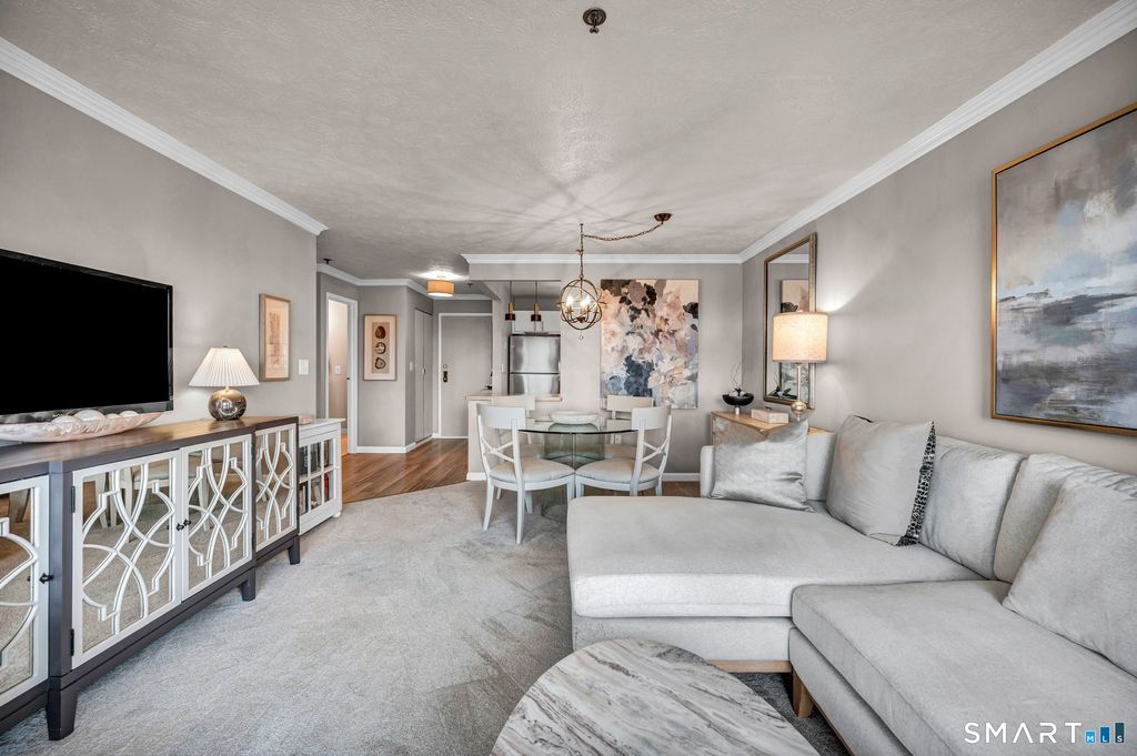 This move-in unit will dazzle you! It has been tastefully remodeled with modern conveniences, flooring and kitchen appliances. Sliding glass doors from your living room lead to your private balcony, overlooking the Ct. River with spectacular views all year long. Relax in your outdoor living space and take in the sensational sunsets, breathtaking fall foilage and amazing Four of the July fireworks set off from the River Barge. Right from your own home! The living room/dining area is light and bright. The kitchen has been thoughtfully redesigned for maximum efficency. The half bath boasts its own laundry area, new vanity and lighting fixtures with updated plumbing and electrical.Your brand new pantry/bar area has been installed for funtionality and storage. Your bedroom is spacious with enough room for a sitting area and work/desk area. This space also has a generously sized walk-in closet and semi remodeld bathroom en suite. Your monthly HOA includes heat, A/C, water, sewer, indoor heated pool, grounds maintenance, security FOB to enter the building, community room and fitness center. You can walk to the Main Street shops, restaurants, Wesleyan University and Middlesex Hospital. Please see attached special feature sheet. Welcome home to you new, cozy condo with views of the CT. River!