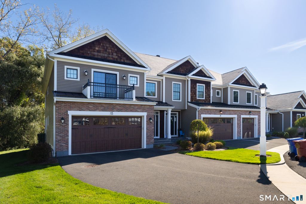 Welcome to the Yorkshire at Farmington-where refined living meets effortless convenience. Ideally located just minutes from UConn Health, I-84, and the vibrant dining & shopping of West Hartford Center, this exceptional 3 bedroom, 2 full/2 half bath end unit townhome offers a rare opportunity to own in one of areas premier communities. Privately set on a coveted cul-de-sac w a serene, wooded backdrop, this home delivers both tranquility & sophistication. The sun-drenched main level features a beautifully designed open-concept layout, where the living rm, dining area, & chef's kitchen come together as one expansive space-perfect for everyday living & entertaining. The living rm is anchored by a gas FP w custom built-ins. The chef's kitchen is equally impressive, featuring a gas range, center island, pantry, & seamless flow for gathering and hosting. A bonus functional mudroom enhances everyday convenience, while an upstairs office provides the ideal work-from-home setup. Retreat to the luxurious primary suite, w 2 WI closets, a spa-inspired bath w a sleek European-style shower, & a private balcony-perfect for morning coffee or evening unwinding. Step outside to enjoy the Trex deck overlooking peaceful wooded surroundings, offering low-maintenance outdoor living at its best. Fin lower level-with its own half bath-adds versatility w a rec rm/exercise area/guest space along w more storage. Low HOA fees & beautifully appointed clubhouse. A rare blend of style, comfort & location!