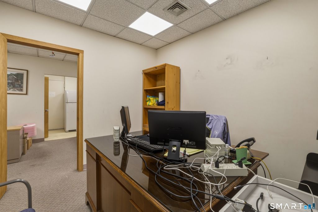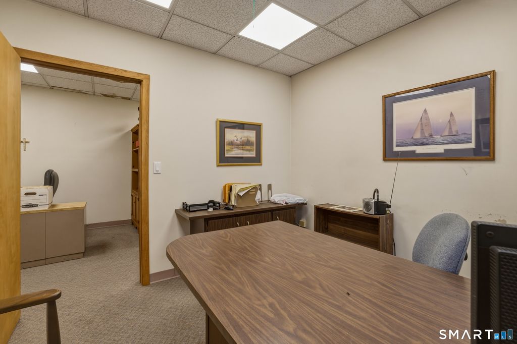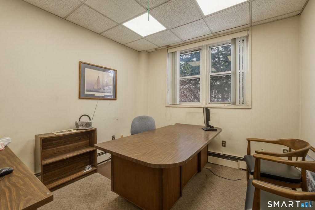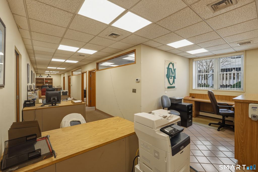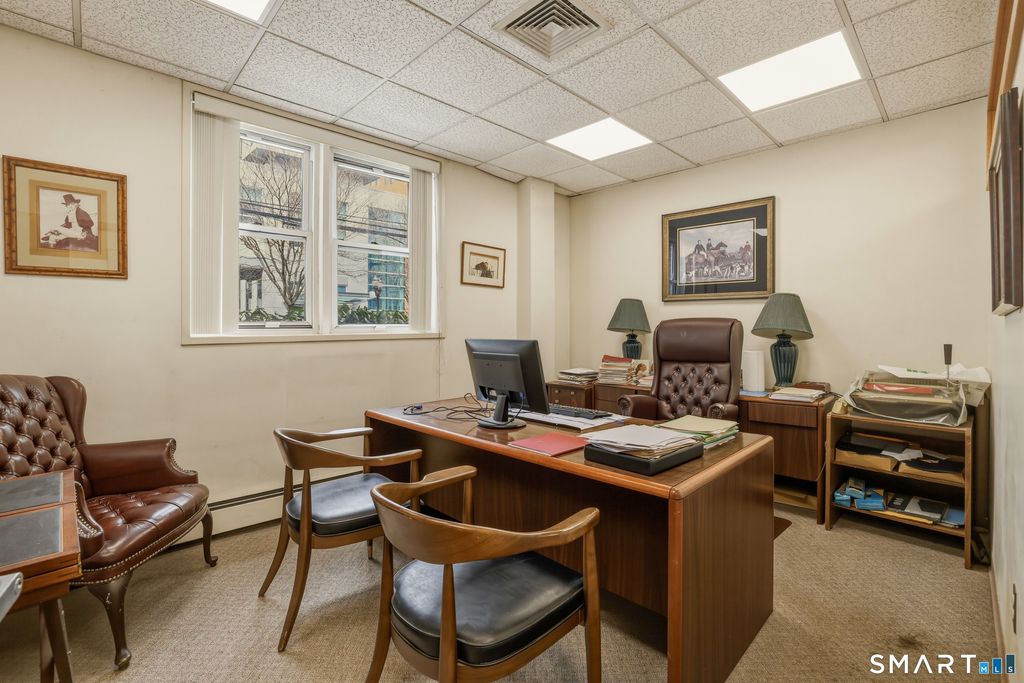 Position your business for success in this well located and versatile office suite at 99 Prospect Street Unit 1B in the heart of downtown Stamford. Offering approximately 1,750 square feet of functional workspace, this ground level unit welcomes you with a professional reception area that sets the tone for clients and visitors alike. The layout features multiple private offices, open work areas, and flexible spaces that can easily adapt to a variety of professional uses. Large windows throughout bring in natural light, creating a bright and productive work environment while complementing the clean, classic interior finishes. A dedicated kitchenette and private restroom add convenience for daily operations, while the overall layout allows for both collaborative and private work settings. Situated within a well maintained brick building, this unit offers a strong presence in a highly desirable downtown location with exceptional walkability and easy access to local restaurants, shops, and public transportation. The HOA monthly fee includes heat and hot water, adding value and convenience to ownership. Whether you are expanding, relocating, or investing, this is a rare opportunity to secure a professional office space that blends functionality, location, and long term value in one of Stamford's most dynamic business districts.